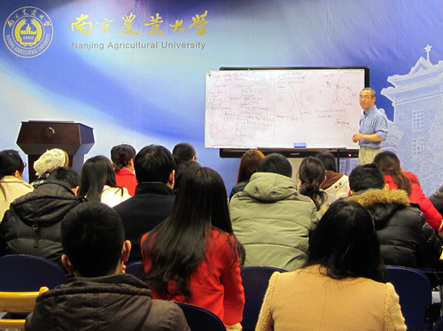 2015年3月19日下午2点至4点,由91自拍 研究生会主办,91自拍 、91自拍 研分会承办的兴农论坛之生物信息学前沿探讨在图书馆6楼报告厅隆重举办,本次活动邀请到了美国华盛顿大学的章伟雄教授与91自拍 30位研究生互动交流, 章教授是国际生物信息学研究领域的一流学者,现任PLoS Comput Biology的执行主编。