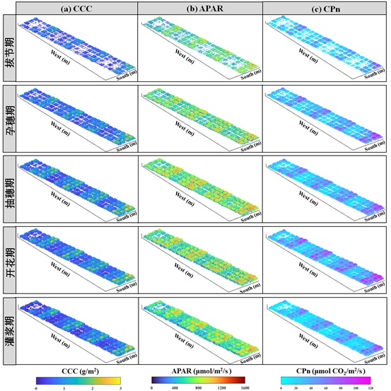 图1 小麦不同生育期的小麦光合参数三维空间分布