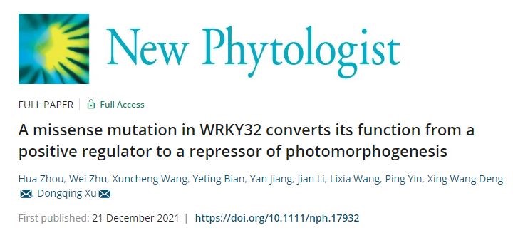 《New Phytologist》发表许冬清实验室“A missense mutation in WRKY32 converts its function from a positive regulator to a repressor of photomorphogenesis”