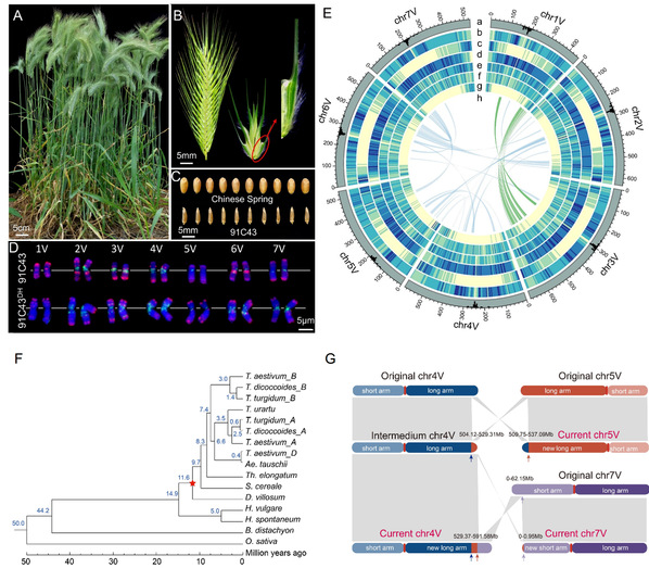 小麦野生资源蕴藏着很多优质、高产、抗病虫、抗逆等优异基因,是小麦遗传改良的基因资源库,可以通过远缘杂交将其有益基因导入普通栽培小麦中国利用。簇毛麦(Dasypyrum villosum,又名 Haynaldia villosa, 2n = 2x = 14,基因组VV)是小麦族、簇毛麦属一年生异花授粉二倍体植物。早在上世纪80年代,91自拍 细胞遗传研究所发现引自英国剑桥的簇毛麦91C43高抗白粉病,利用远缘杂交和染色体工程,创造了携带白粉病基因Pm21的小麦-簇毛麦6VS/6AL易位系,成为我国小麦抗病育种主要抗源,育成了50余个小麦品种,相关研究获得国家发明二等奖。此后研究还发现,簇毛麦兼抗多种病害,并且具有品质相关优良基因,但由于缺乏高质量参考基因组,簇毛麦优异基因挖掘效率较低,优异性状形成机制解析不够。