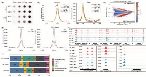 通过结合DRIP-seq(DNA:RNA杂交免疫沉淀测序)技术以及RNA-seq、DNase-seq和ChIP-seq等多种组学数据,该研究详细阐述了在水稻冷胁迫应答过程中,R-loop的动态变化及其调控功能。该研究发现,冷胁迫可引起水稻基因组中R-loop重编程(图一),且与冷胁迫有关的R-loop含有一些转录因子特异结合的基序。