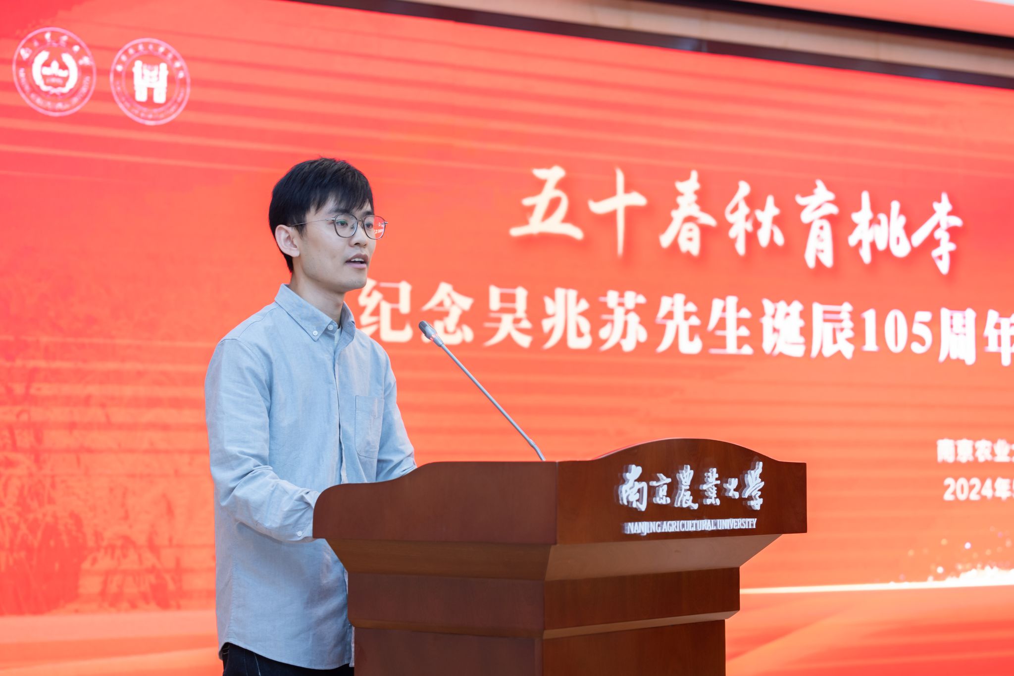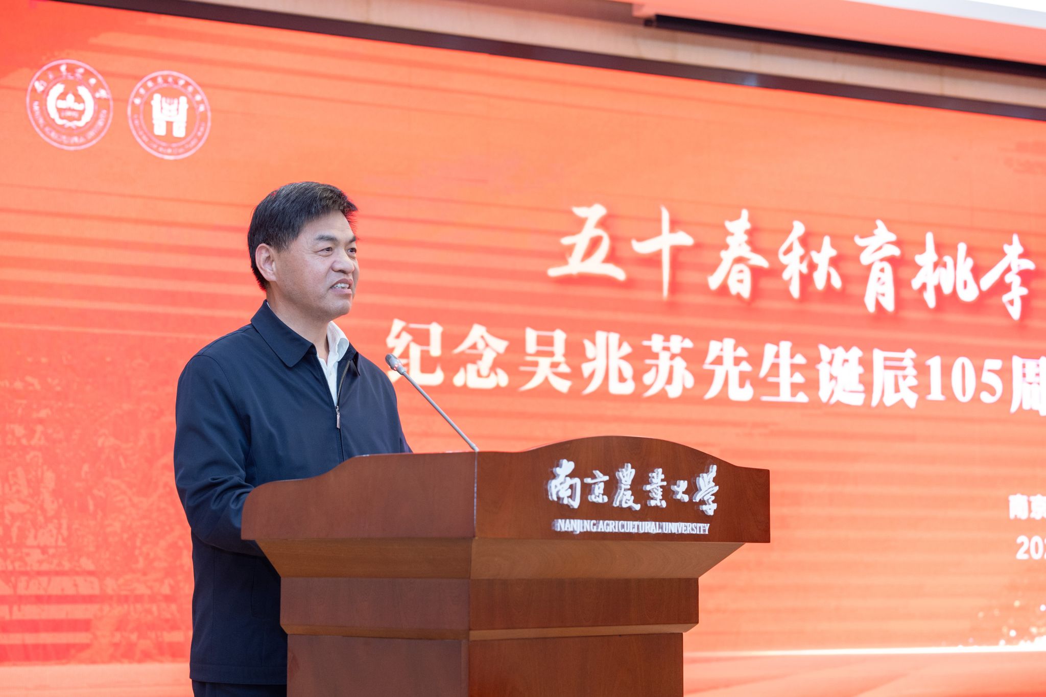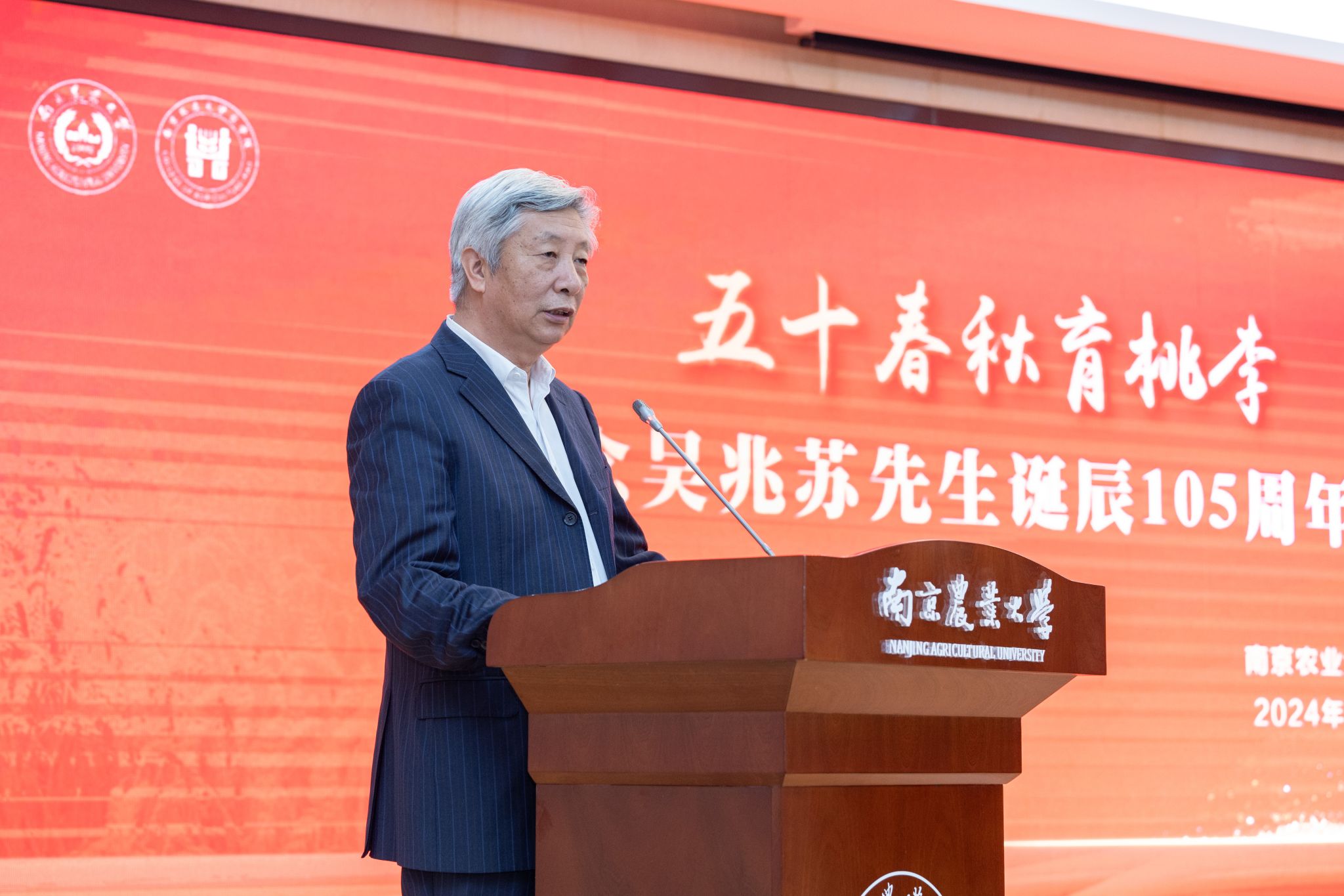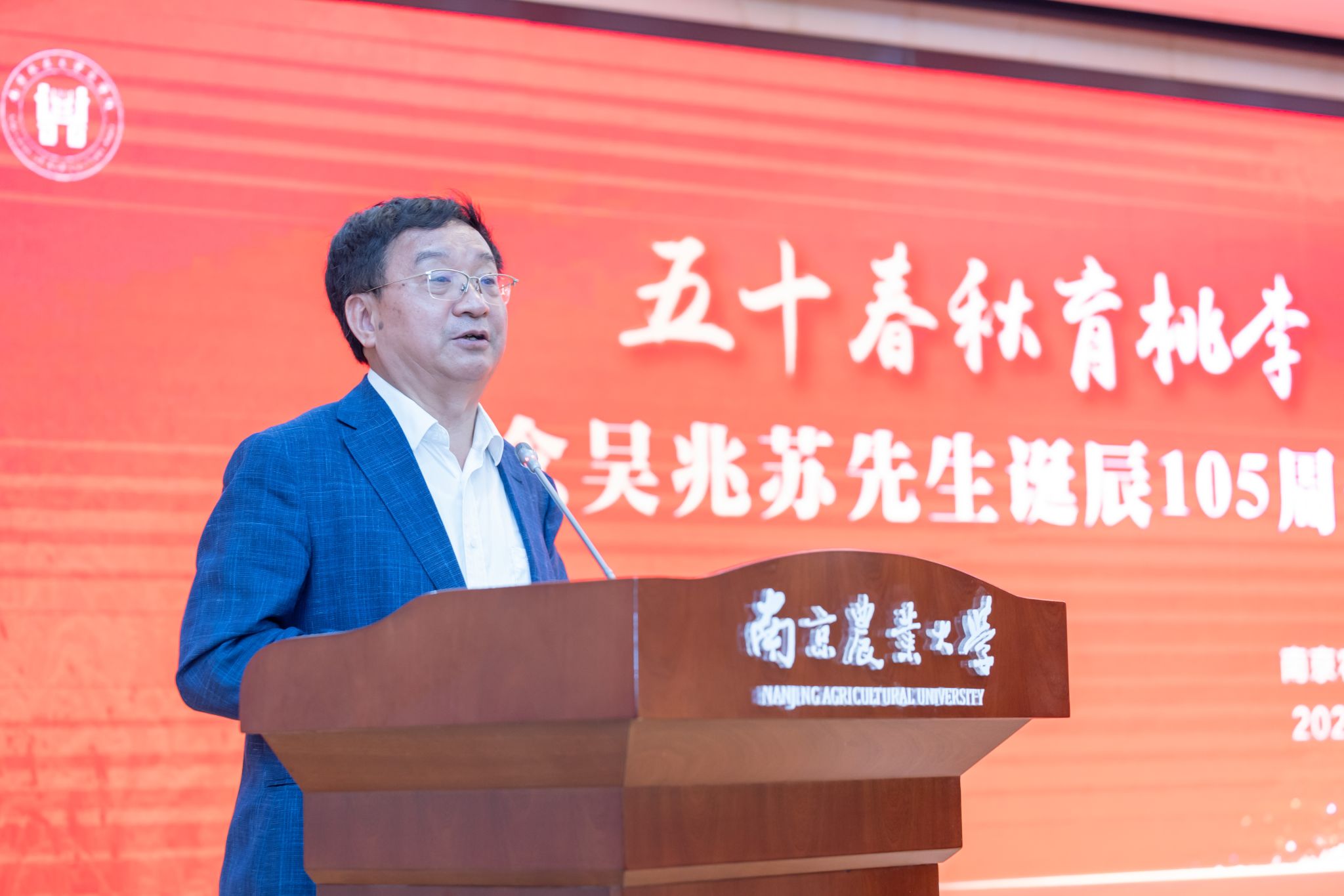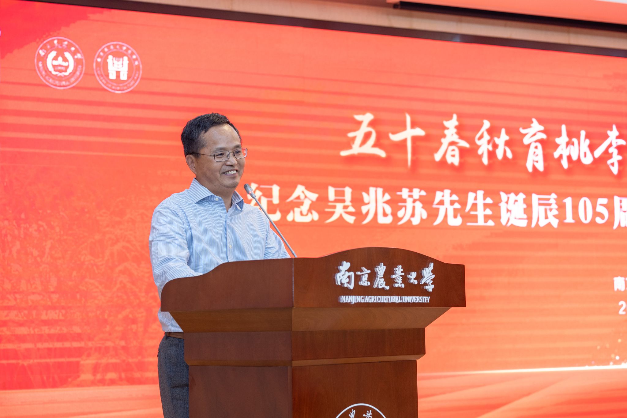 王春春高度赞扬了吴兆苏先生对91自拍 小麦遗传育种事业所作出的重要贡献,指出吴兆苏先生一生所追求的是坚守科学报国、留学报国的事业,是半个多世纪麦田守望、躬耕田野的事业,是爱业爱生、潜身育人、桃李满天下的事业。王春春表示,此次纪念活动的举办既是对新时代南农精神的凝练与传承,也是奋力回答好“强国建设、南农何为”时代命题的榜样示范,更是对传承和弘扬新时代科学家精神、教育家精神的生动实践,要求全校师生积极贯彻落实总书记指出的农业农村现代化关键在科技、在人才的重要核心精神,争出新成果、争做“大先生”,勇担新使命,为端牢中国饭碗、为农业强国建设作出新的更大贡献。