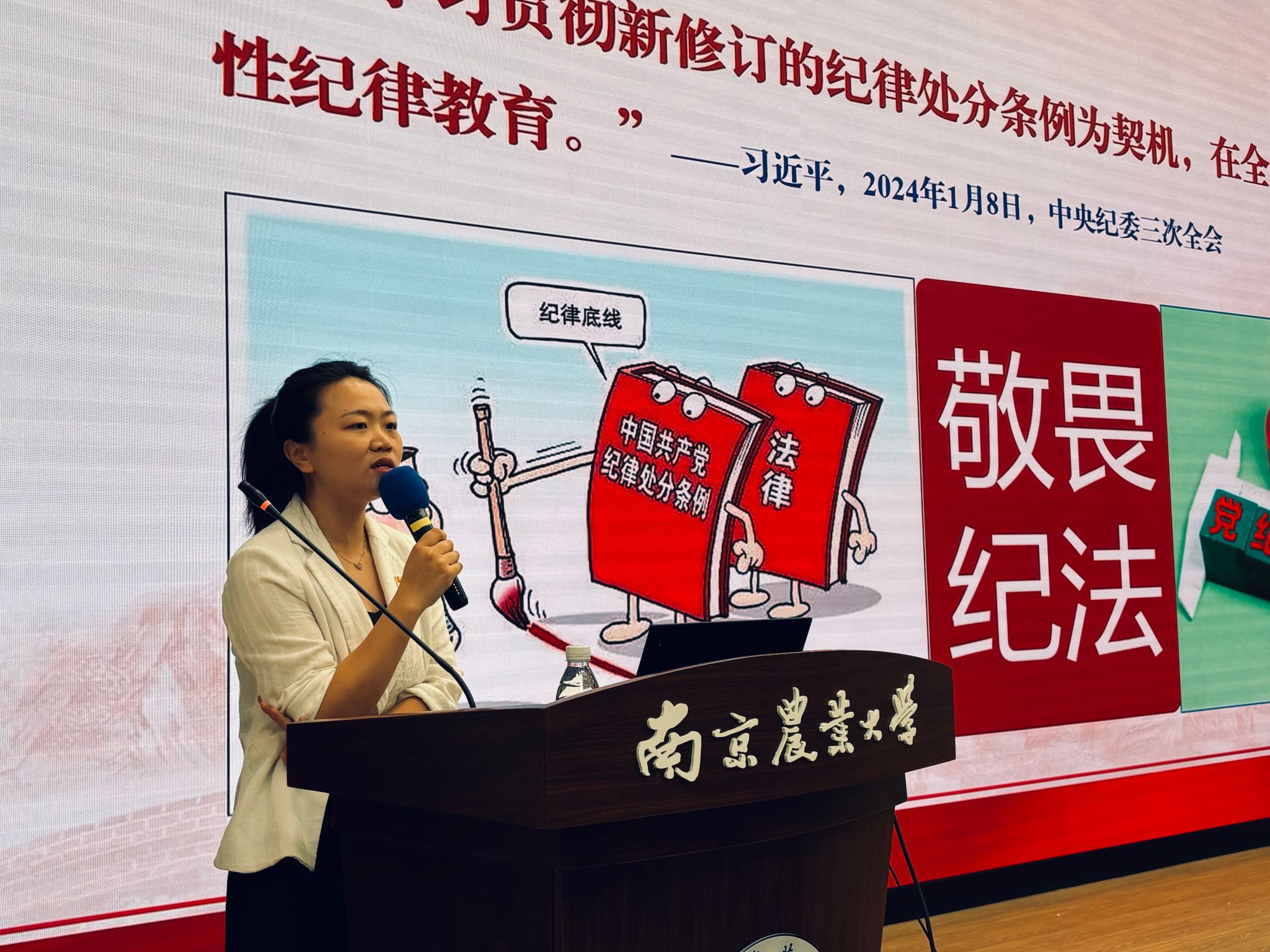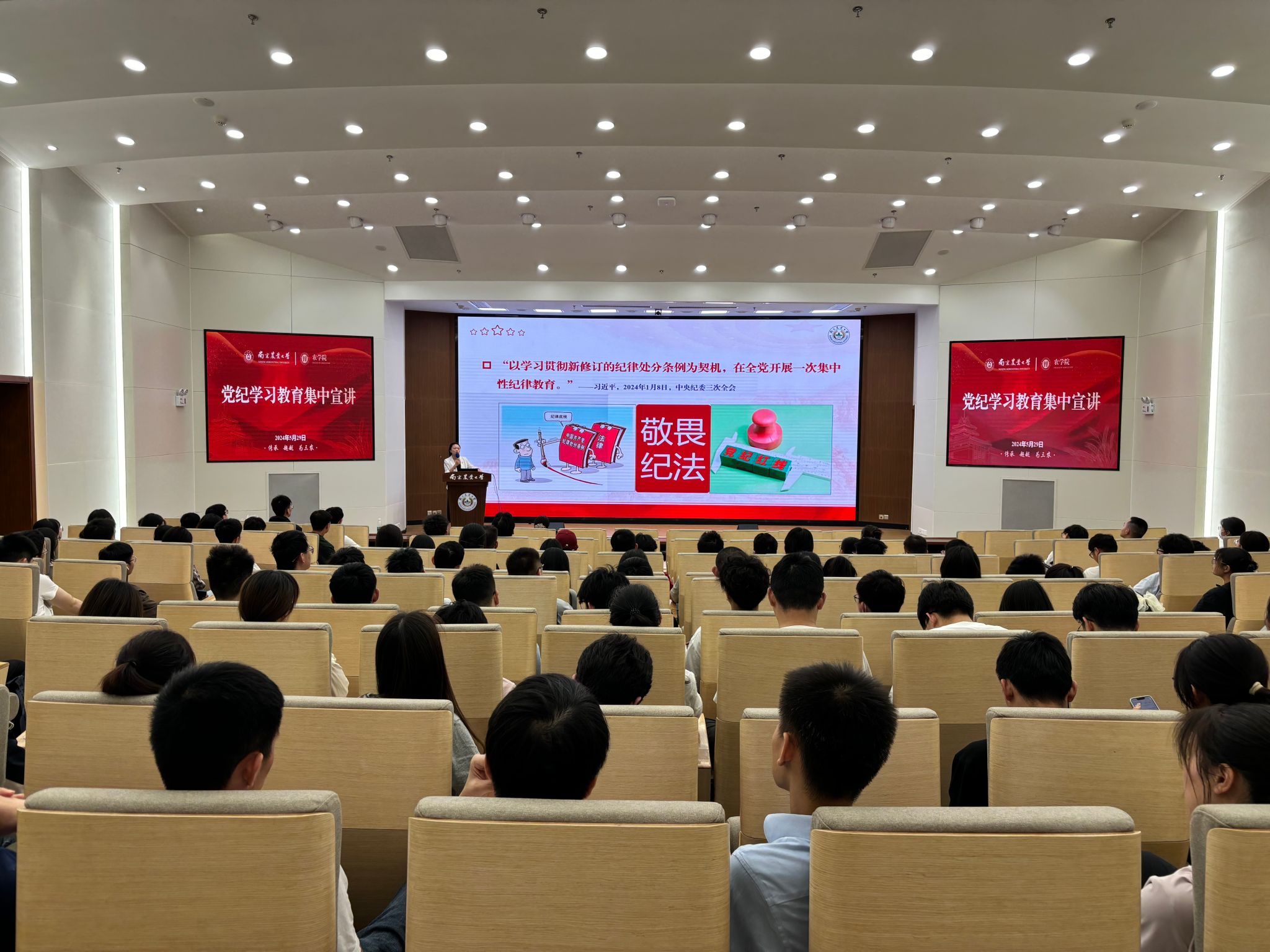 为深入贯彻落实习近平总书记关于党纪学习教育的重要讲话和重要指示精神,深入学习《中国共产党纪律处分条例》,5月29日,91自拍 组织研究生党员开展了党纪学习教育集中宣讲。活动邀请到了学校党纪学习教育宣讲团成员金洁南老师担任主讲嘉宾。91自拍 组织员许娜、研究生辅导员陈杰与研究生党员一起参加了宣讲会。