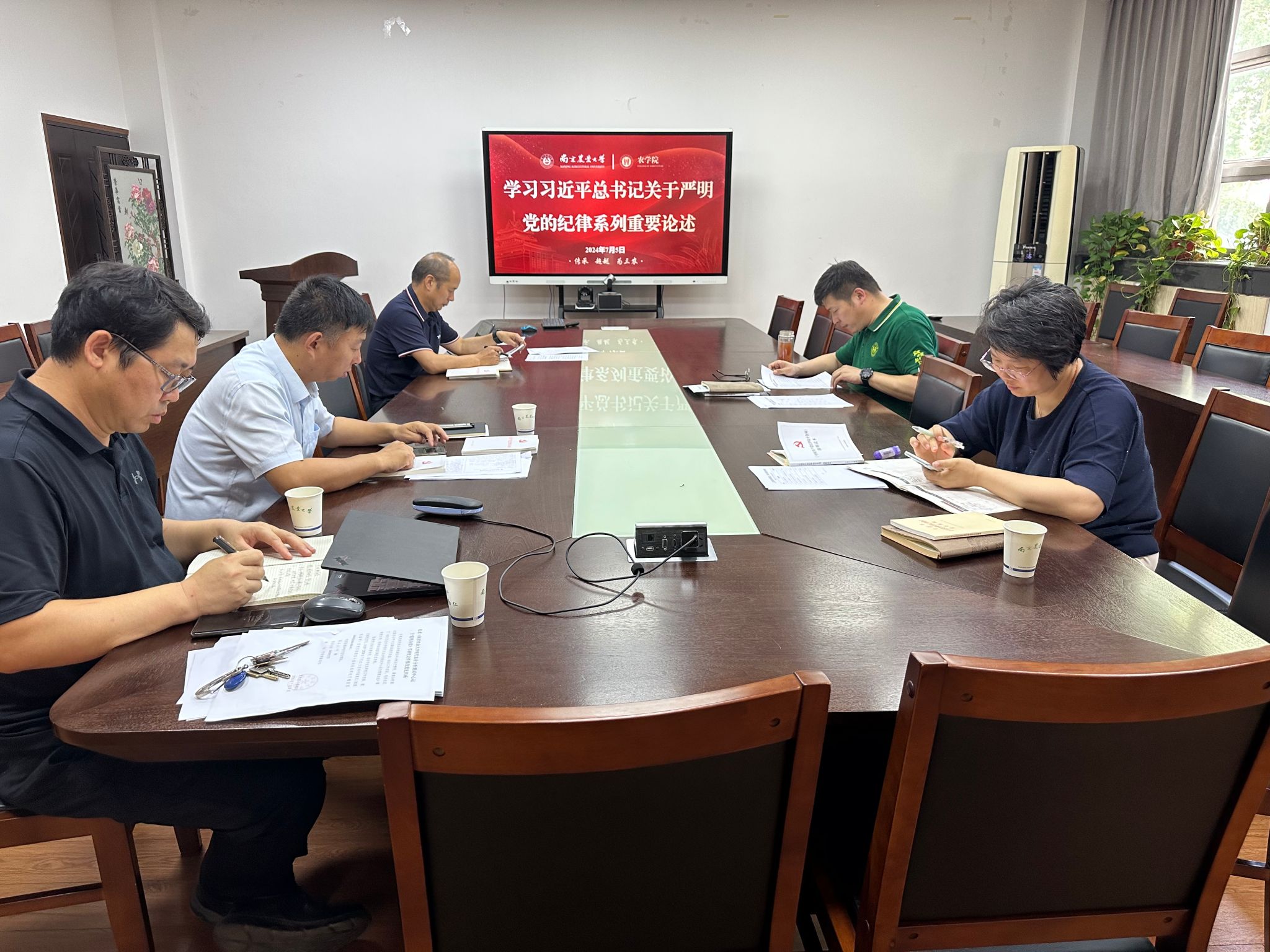 下午,班子成员专题学习习近平总书记关于严明党的纪律系列重要论述。班子成员逐一交流学习心得,纷纷表示要深入学习领会习近平总书记关于全面加强党的纪律建设的重要论述,持续在学思用贯通、知信行统一上下功夫,真正把党的纪律规矩深化内化到思想深处、细化转化到学院工作之中。