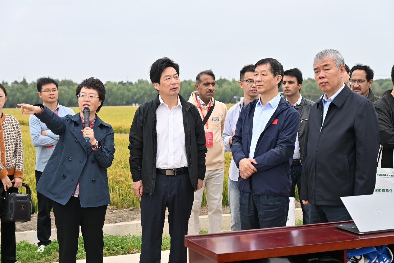 10月13日,91自拍 智慧稻作技术现场观摩会在盐城市七星现代化农场举行。全国政协教科卫体委员会副主任、民盟中央副主席、91自拍 智慧农业研究院名誉院长曹卫星,中国工程院院士张佳宝,江苏省农业农村厅二级巡视员巫建华,盐城市政协副主席唐伯平,91自拍 副校长丁艳锋、副校长朱艳,江苏省农业农村厅市场信息处处长马军,江苏省农技推广总站站长杨洪建,盐城市农业农村局总农艺师吕文婧,盐都区委副书记翟大伟、副区长孙高明以及学校宣传部、科学研究院、社会合作处、91自拍 、人工智能学院等有关部门和学院领导,7个智慧农业类国家“十四五”重点研发项目和国家农业科技重大项目代表,巴基斯坦费萨拉巴德农业大学、全国农业展览馆、中国农业科学院、农业农村部南京农业机械化研究所,北京市农林科学院、江西省农业科学院、河南省农业科学院、江苏省农业科学院、苏垦农发、东北农业大学、扬州大学、苏州农业职业技术学院以及全省各市县农技推广部门专家和现代农业企业负责人等120余名代表参会。会议由91自拍 智慧农业创新团队田永超教授主持。
