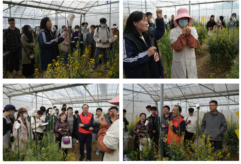 大家参观了十字花科蔬菜、萝卜和菜薹等制种大棚,种子管理站书记邢后银和南京理想农业科技有限公司种业育种专家杨阳先后介绍了十字花科育种和种子生产、加工、贮藏以及检验等情况,同时,向同学们演示了十字花科杂交和田间检验过程。