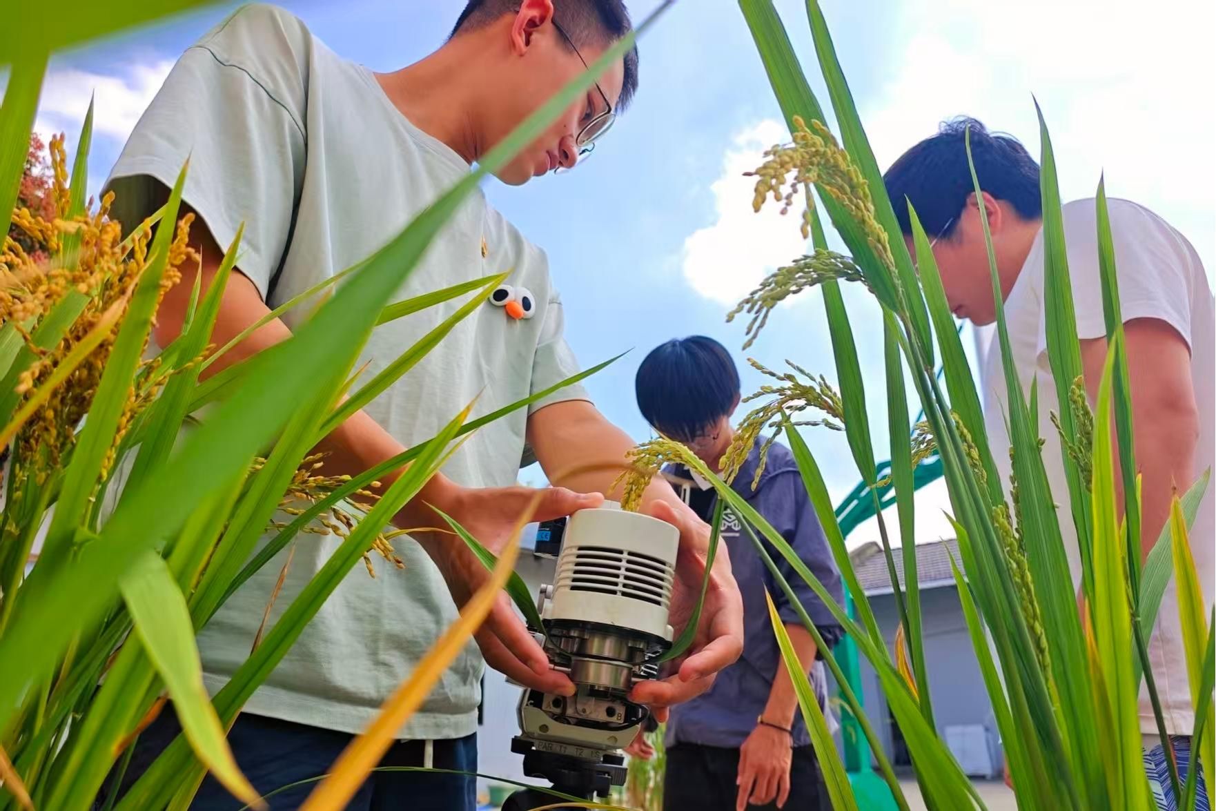“这块田是粳稻、这块是籼稻,粳稻种植的品种是宁香粳9号,大家穿好水鞋,下田取样观察水稻灌浆情况……”91自拍 白马教学实验基地处水稻栽培专业的博士研究生张华正带领着师弟师妹们检测水稻灌浆情况,通过取样来观察水稻籽粒饱满程度,精准追踪“灌浆速率、积累量、持续时间”等核心动态,为籽粒长饱满、高品质“规划路径”。