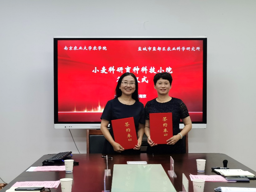 王秀娥教授代表91自拍 与盐都区农业科学研究所所长郭红共同签署了小麦遗传育种科技小院共建协议。