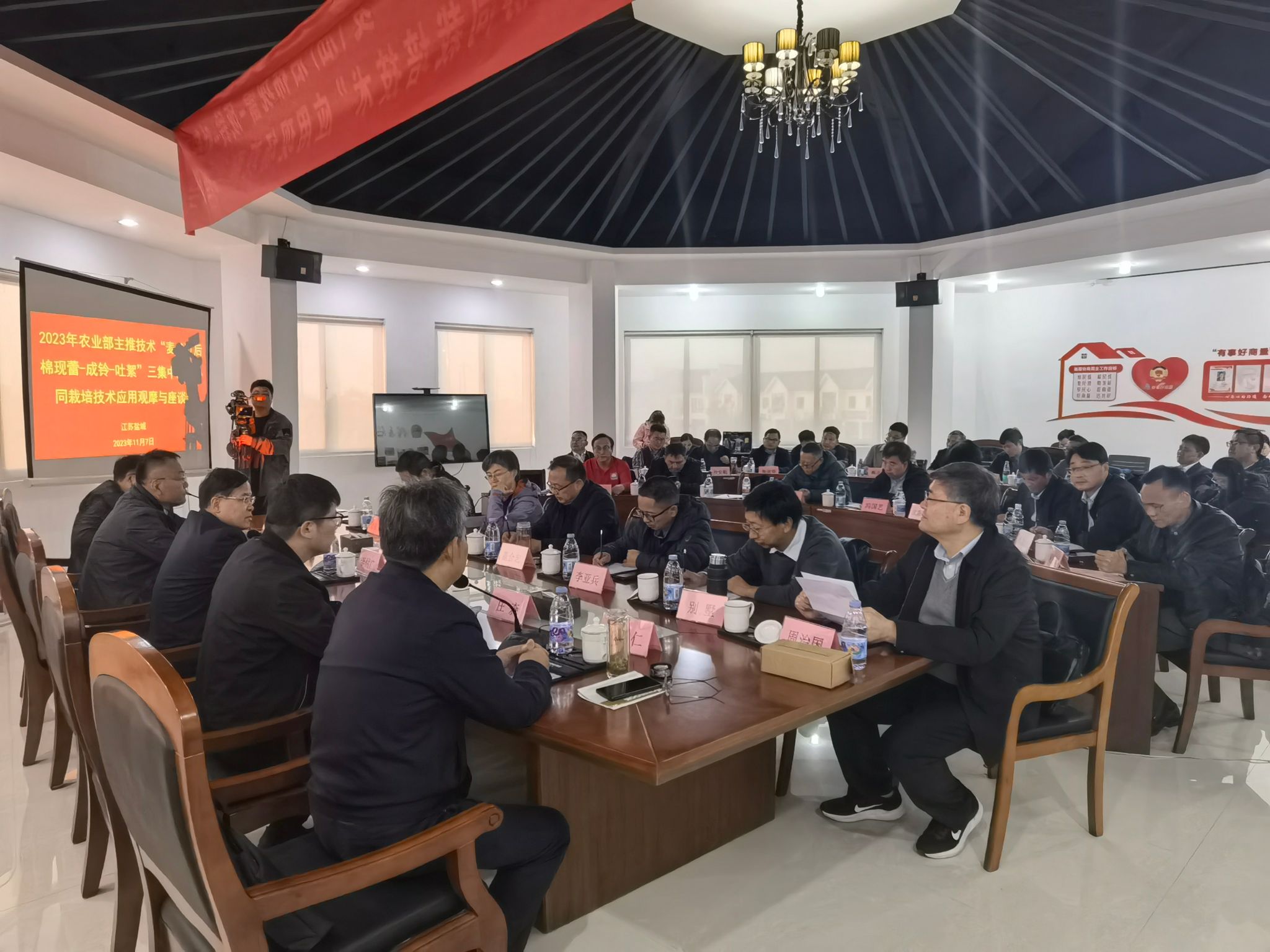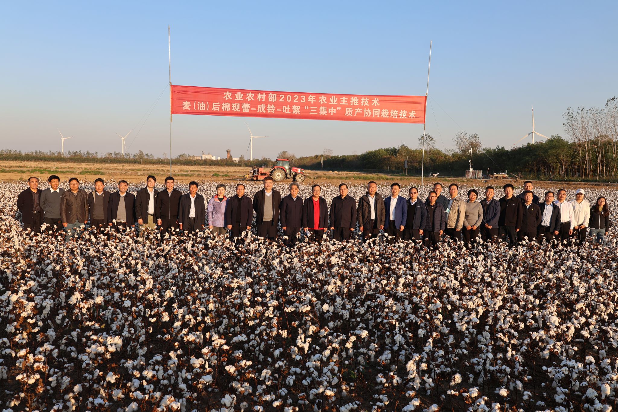 11月7-8日,农业农村部2023年农业主推技术“麦(油)后棉现蕾-成铃-吐絮”三集中“质产协同栽培技术”应用现场测产观摩与座谈会在江苏召开。国家棉花产业体系、农业农村部农技推广中心以及项目组领导专家先后观摩了兴化市安丰镇小麦后棉花和大丰区稻麦原种场盐碱地大麦与油菜后棉花技术应用现场,专家组对91自拍 经济作物生理生态与生产管理团队麦(油)后“三集中”质产协同栽培技术应用成果进行验收,在前茬小麦、油菜分别达到477.3 kg/亩、253.7 kg/亩的示范地进行现场估产,八五折籽棉产量分别达到357.9 kg/亩、343.4 kg/亩。