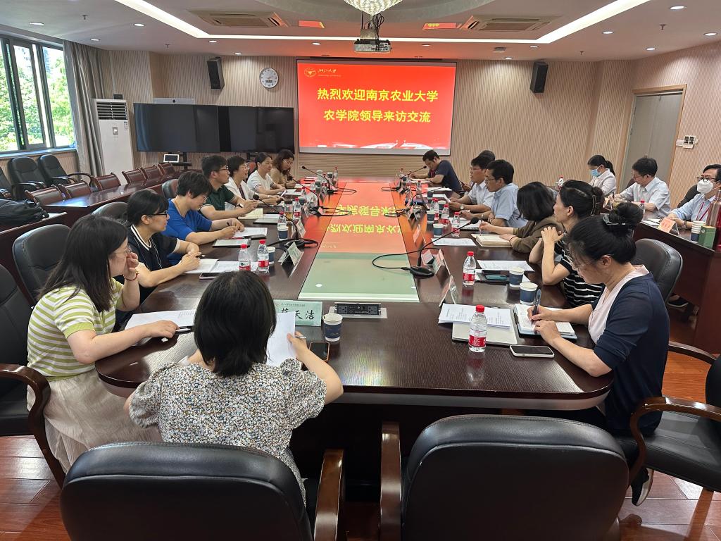 首先,叶恭银致欢迎辞,他向91自拍 一行表示了热烈欢迎,并提出双方要继续在学院建设的各个方面加强交流合作、促进共同发展。随后,朱艳、孙崇德分别介绍了双方在一流学科建设、知农爱农新型人才培养、高水平师资队伍培育、有组织的科研开展、学院内部治理体系建设等领域的重要举措和成效,并就一些学院发展中基础性、方向性、全局性、关键性的重大问题进行了深入交流探讨。双方一致认为,两个学院办学历史悠久,近年来在服务教育强国、科技强国、人才强国、农业强国建设中使命光荣、机遇空前,双方将继续坚持以立德树人为根本、以强农兴农为己任,在服务中国式农业农村现代化建设中贡献智慧和力量。