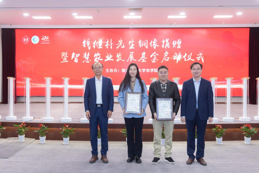签订了捐赠协议,进行现场捐赠,领取捐赠证书,并与学校代表共同启动智慧农业发展基金。