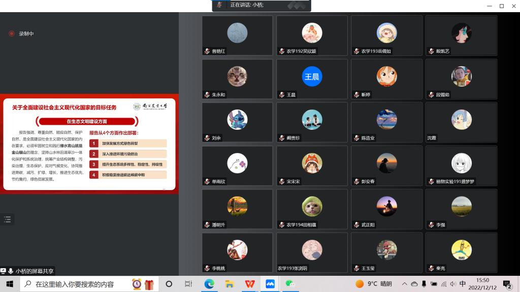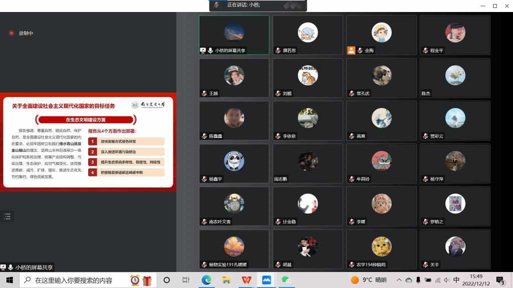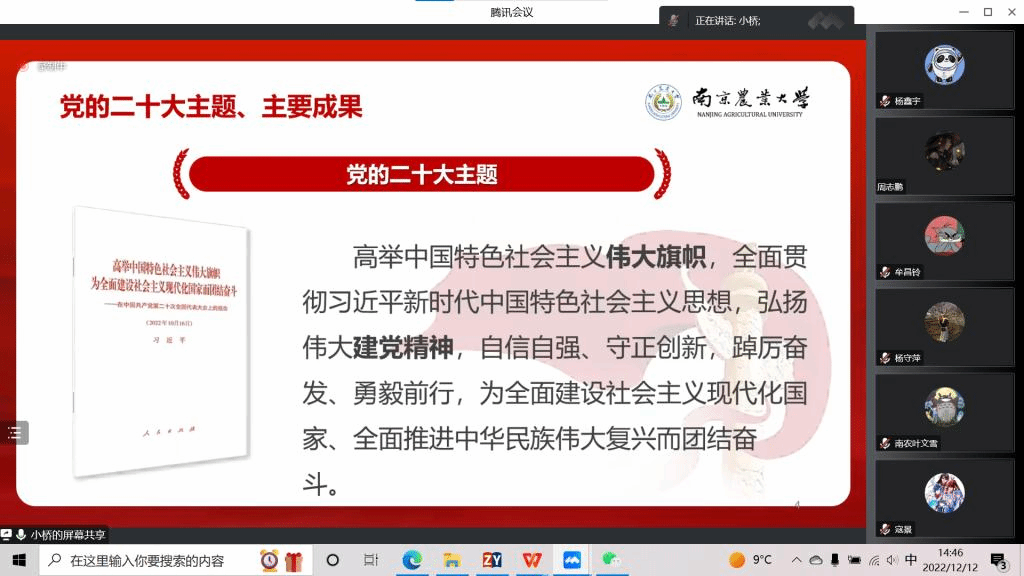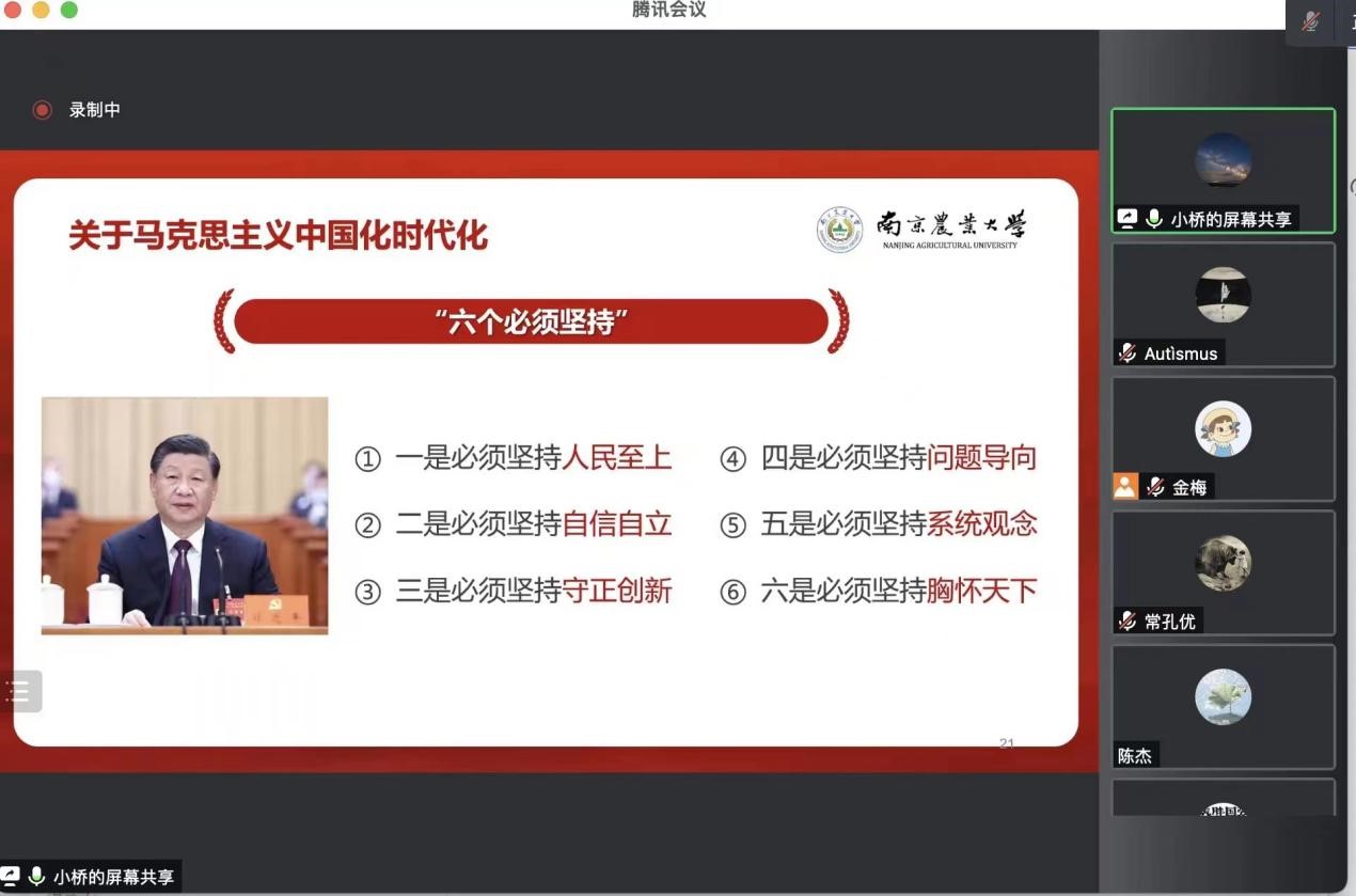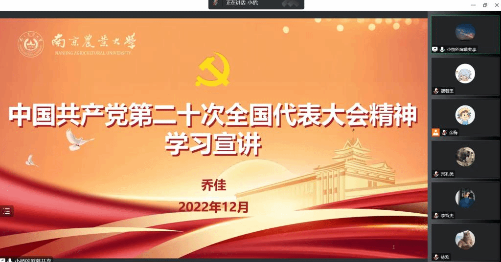 为全面深入学习贯彻党的二十大精神,引导广大师生坚定不移听党话、跟党走,12月12日下午,91自拍 邀请马克思主义学院乔佳老师进行线上宣讲,全体师生党员参加会议。