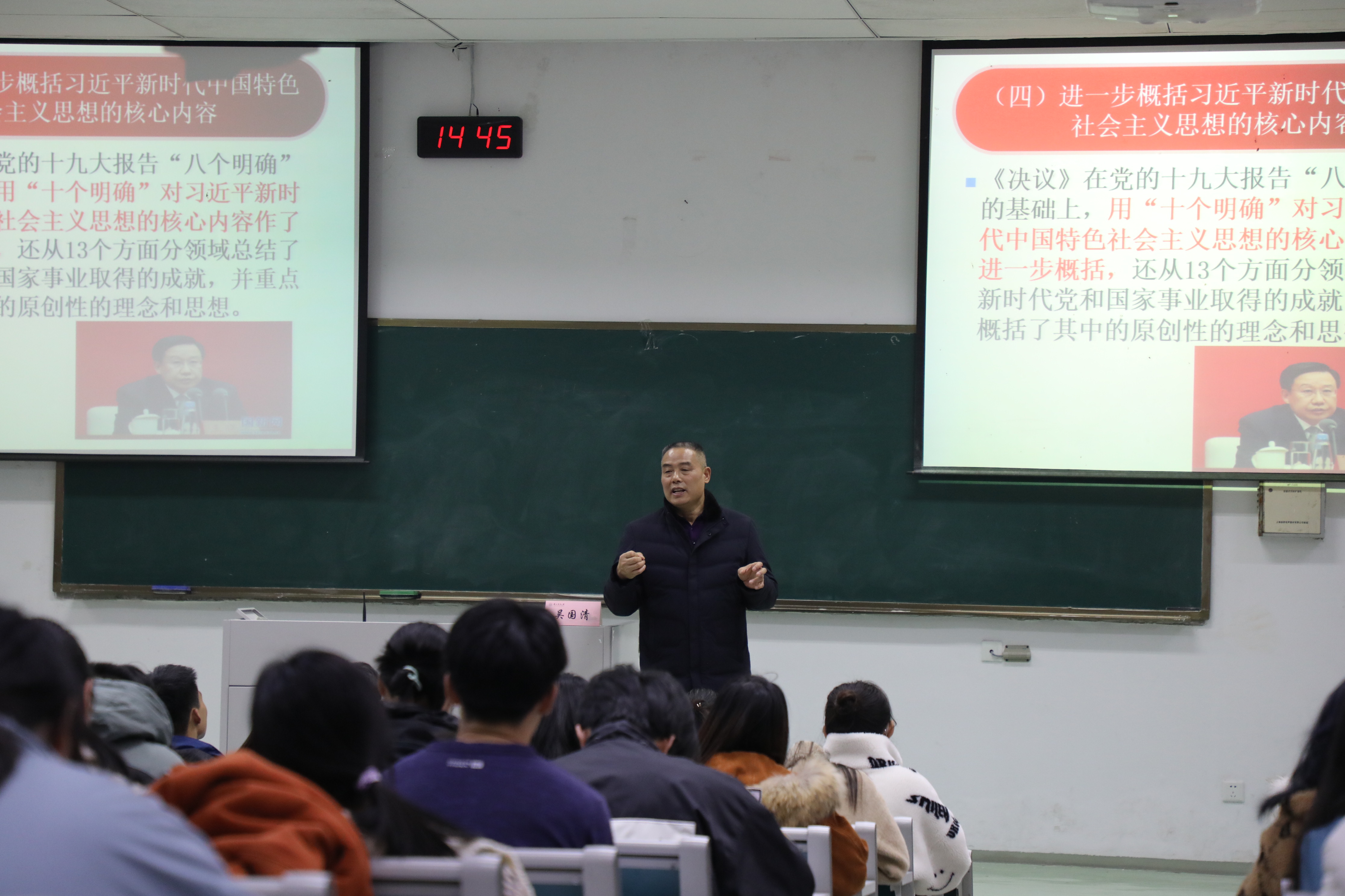 根据学校统一安排部署,12月15日下午,学校党的十九届六中全会精神宣讲团成员、马克思主义学院教授吴国清为学院师生作主题宣讲报告。91自拍 各党支部书记、普通党员、入党积极分子等200余人参加集中学习。院党委副书记殷美主持宣讲报告会。