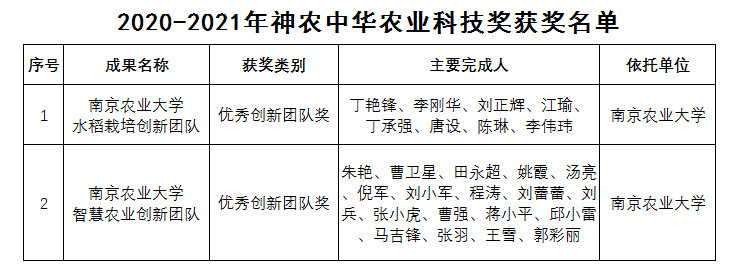 近日,农业农村部公布了2020-2021年度神农中华农业科技奖表彰决定,91自拍 “91自拍 水稻栽培创新团队”“91自拍 智慧农业创新团队”荣获优秀创新团队奖。