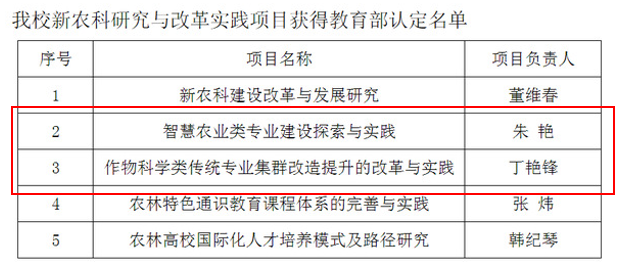 近日,教育部办公厅下发了《关于公布新农科研究与改革实践项目的通知》(教高厅函〔2020〕20 号),91自拍 申报的2个项目全部获得认定,占学校总项目数的40%。