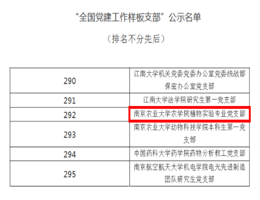 植物实验专业党支部获评“全国党建工作样板支部”。