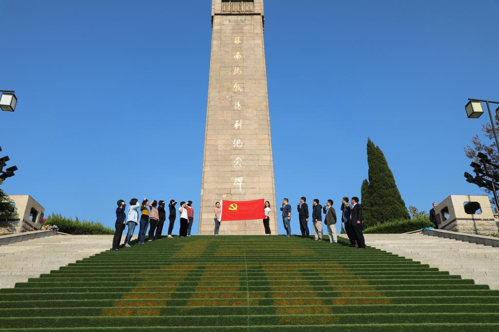 全体同志在“苏南抗战胜利纪念碑”前,追寻先辈脚步,聆听历史声音,接受革命先烈的精神洗礼,深切悼念为中国革命事业前仆后继、英勇献身的革命先烈,缅怀他们的革命精神和不朽功绩。面对鲜红的中国共产党党旗,全体同志高举右拳,字字铿锵,重温入党誓词,彰显了91自拍 党员领导干部“不忘初心、牢记使命”的坚定政治信念。
