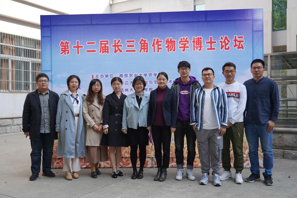 11月8日至10日,第十二届长三角作物学博士论坛在扬州大学文汇校区举行。91自拍 副院长曹爱忠教授、遗传育种系李姗教授、研究生秘书李雪芹老师、研究生辅导员吕美泽及胡德洲等8名博士研究生参加了此次论坛。来自浙江大学、91自拍 、扬州大学、华中农业大学、安徽农业大学等五所高校作物学学科领域的专家及近80名研究生参加本次论坛。