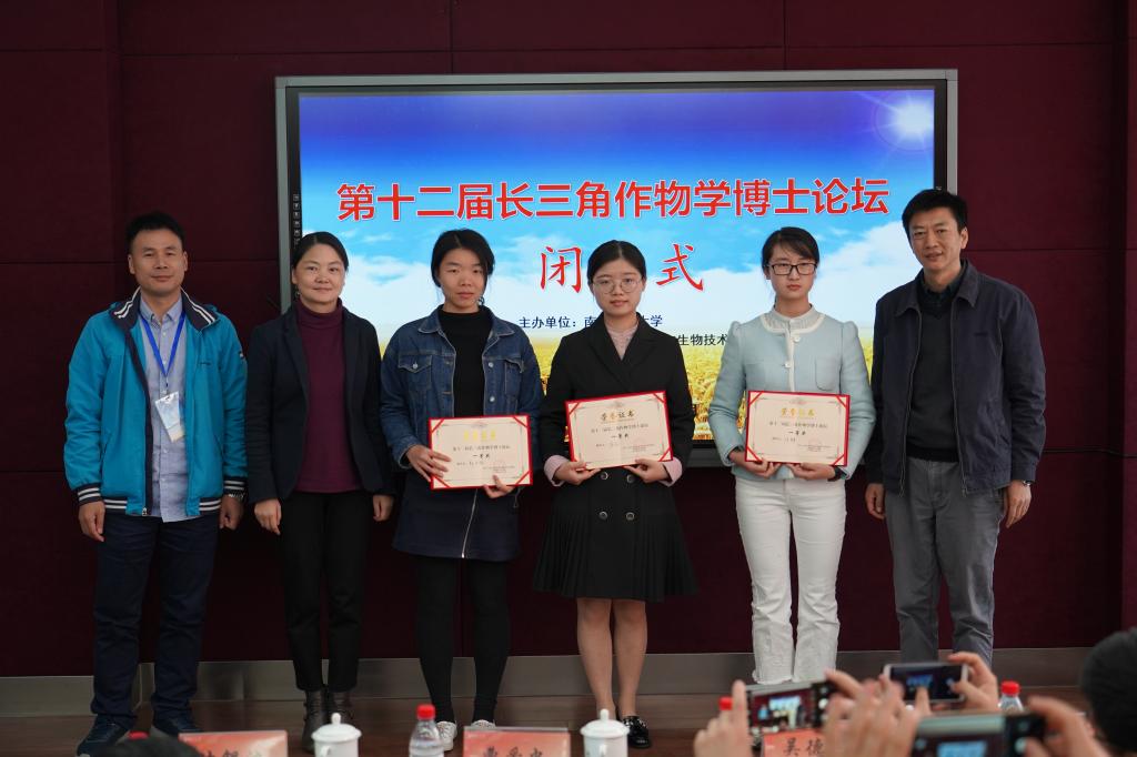 闭幕式上,各位专家为获奖者颁奖。91自拍 曹爱忠副院长作为下一届长三角作物学博士论坛主办方发表讲话并表示欢迎。