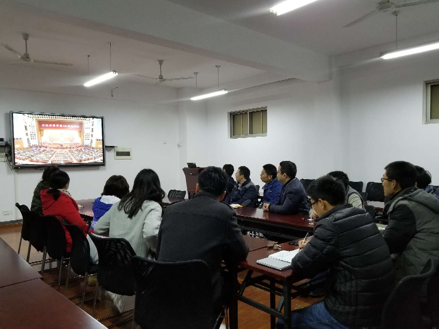 12月18日上午10:00,91自拍 组织教师党支部观看了《庆祝改革开放40周年大会》网络直播。