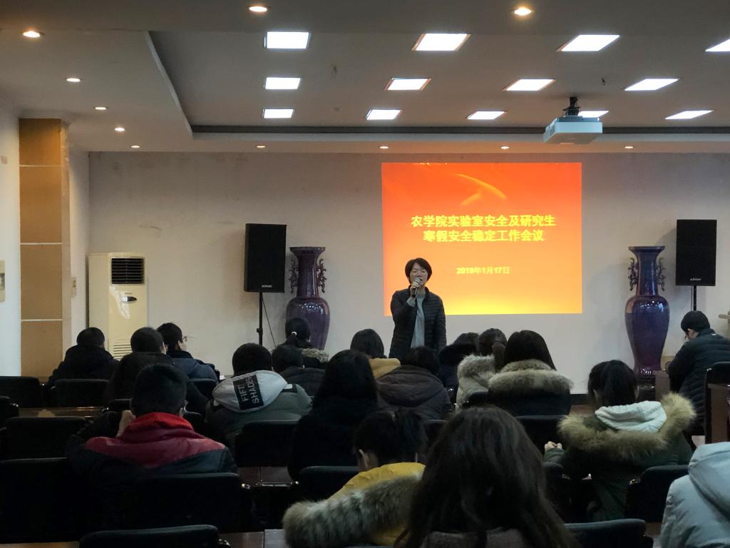 2019年1月17日下午,学院召开实验室安全及研究生寒假安全稳定工作会议,党委副书记殷美,副院长赵晋铭出席会议并讲话。实验室安全老师、研究生辅导员及课题组学生负责人参加会议。会议由辅导员吕美泽主持。
