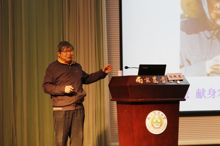 讲堂开始,陈佩度老师从成长经历、小麦情缘、研究论著、情系南农和追求真理等几个不同的角度,全面细致地介绍了中国工程院院士、著名小麦遗传育种专家金善宝先生的学术人生,为大家勾勒出一位辛勤耕耘、追求真理,献身农业教育科研事业的农业科学家形象。