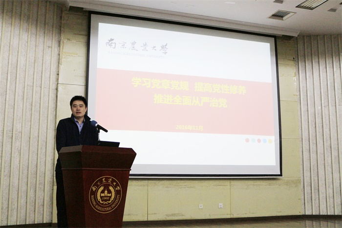 孙部长围绕“学习党章党规,提高党性修养,推进全面从严治党”这一主题,分别从学习党章的重大意义、学习党章,提高党性修养、贯彻党章,推进全面从严治党三个方面讲述本次党课。孙部长结合当前时事政治及身边实例,与同学们分享学习心得,让同学们深刻地认识到党章学习的重要性,并就“四讲四有”“三严三实”“两学一做”学习教育提出背景及内容结构作出详细讲解,教导同学们要端正入党动机,不做违背党的基本原则的事情。他还强调党员要不忘初心,时刻牢记入党誓词,即使身处高位也要加强自身修养与党性锤炼,做一个全心全意为人民服务的好党员。
