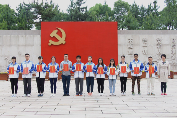 参观纪念馆后,学院一行人来到位于纪念馆北广场的宣誓墙,在党旗下进行了庄严的宣誓仪式,重温入党誓词,活动由91自拍 分党校秘书长靳雪莹主持。随后学院领导老师为2015年12月新发展预备党员佩戴党徽并为红色基金获得同学颁发荣誉证书。最后部分党员同学发表了自己参观完纪念馆的深切感受,包括对近代历史的自我认知及作为一名党员应尽的义务与责任。