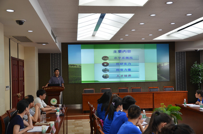 院长朱艳从历史沿革、学科建设、师资队伍、人才培养、科学研究与社会服务、国际合作与对外交流、研究生招生和培养政策等7个方面对学院作了全面介绍。她指出自2000年91自拍 成立以来,科研实力、师资队伍、科研成果及优良作风都走在全校前列。学院秉承着一代代农学人应有的吃苦耐劳、不断钻研的精神,不断进取,勇于开拓。她还强调,越来越多的国际交流合作使学院向国际知名的特色研究型学院迈进,她勉励同学不断努力和创新,把握这次交流和学习机会,争取早日考取91自拍 研究生。