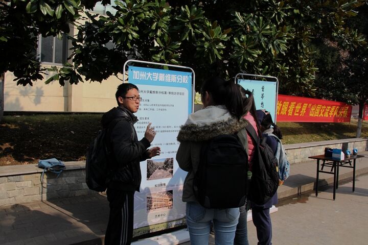 本次展览介绍了加州大学戴维斯分校、弗罗里达大学、康奈尔大学等世界知名学府,内容包含两个方面,一个是对学校总体情况的介绍,包括校园风景,学风建设等;另一个是各大学与我校合作的出国交流项目,包括GPA要求、英语要求等。很多同学驻足观看各项展板,记录下相关信息。