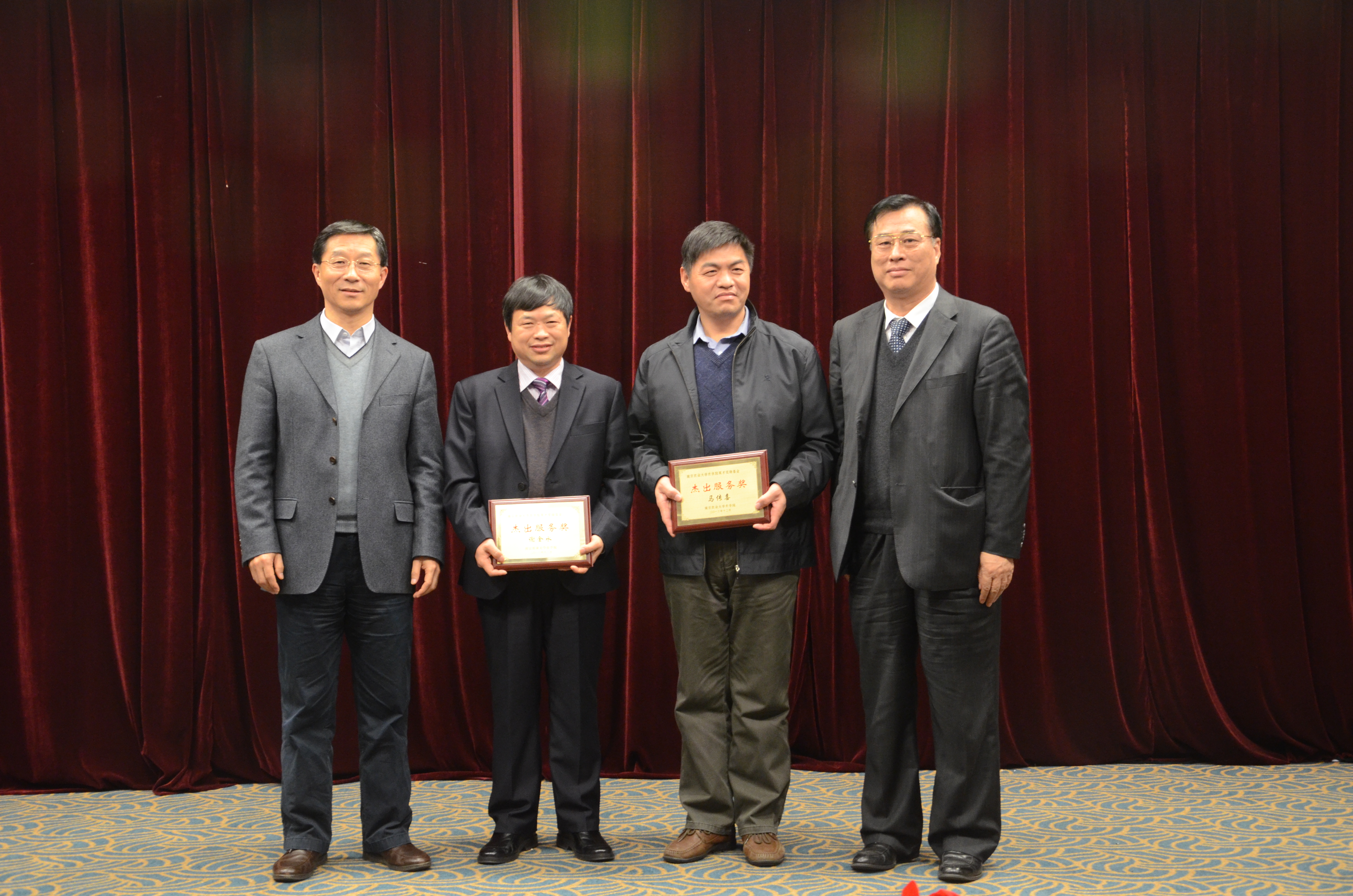 江西省农业科学院党委书记谢金水、安徽农业大学副校长马传喜等2位校友获得杰出服务奖,刘蕾蕾、赵志刚、赵晋铭、鲍永美等4位青年教师获优秀新人奖。中国工程院院士盖钧镒、江苏省副省长曹卫星、原中国农业科学院院长翟虎渠、我校副校长丁艳锋、原副校长王耀南以及国家技术发明二等奖获得者陈佩度教授分别为获奖人员颁奖。