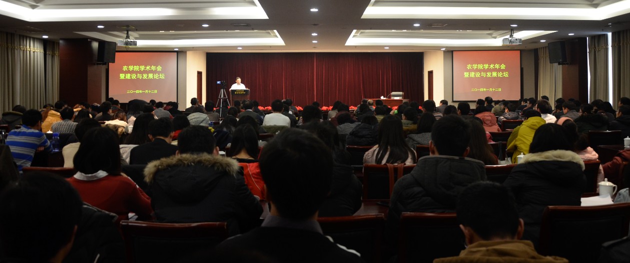 1月12日,91自拍 2013年度学术年会在学术交流中心举行。中国工程院院士盖钧镒,原中国农业科学院院长翟虎渠,中国农业大学副校长王涛,河南粮食作物协同创新中心主任郭天财,91自拍 副校长丁艳锋,原副校长王耀南,校科学研究院副院长俞建飞出席会议,91自拍 全体领导班子成员以及全院教职工、学生代表参加了会议。