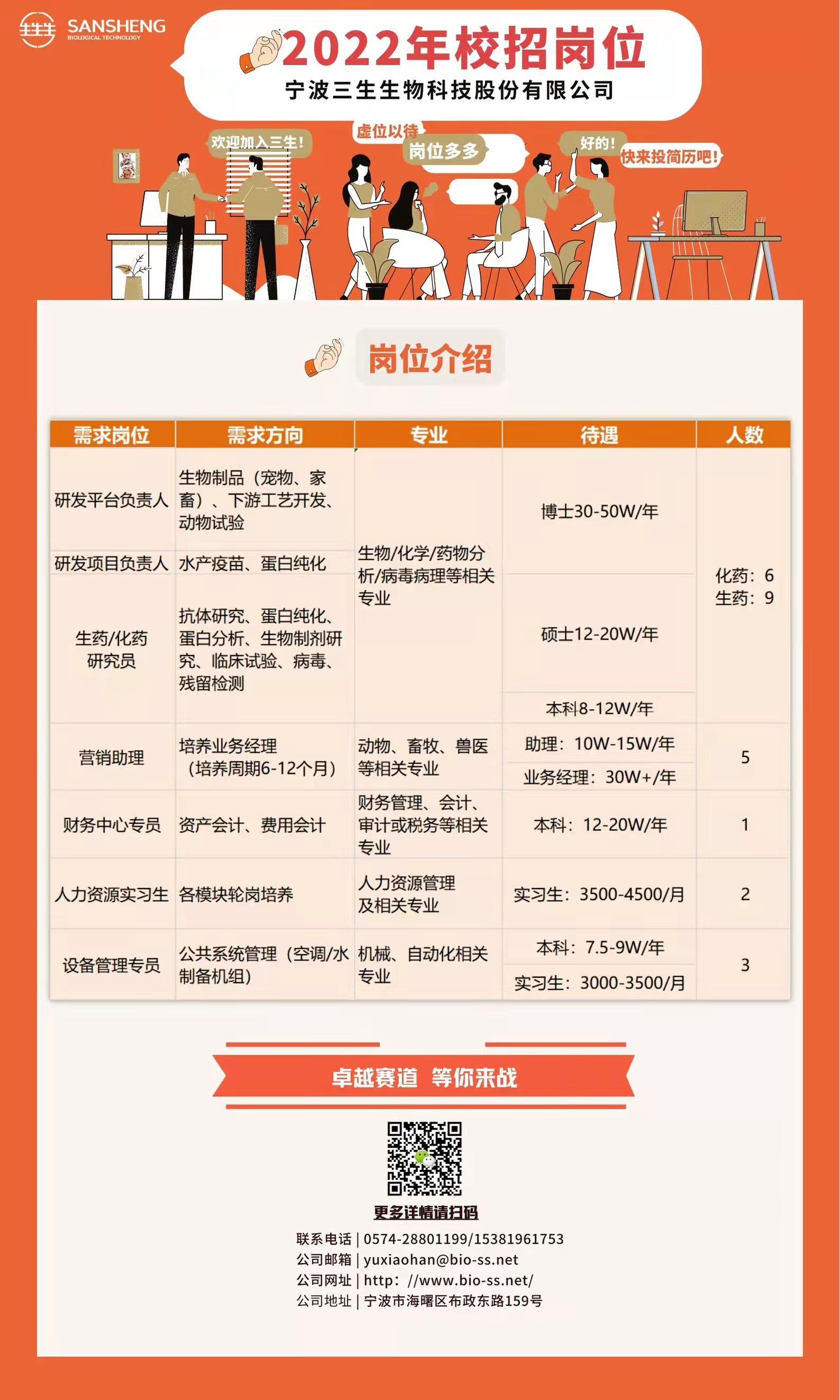 - 附件【宁波三生生物科技股份有限公司岗位需求(1).docx】已下载次