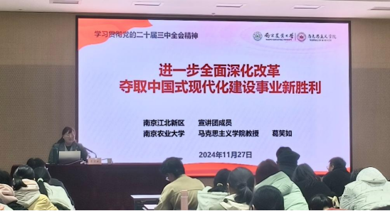 为深入学习贯彻党的二十届三中全会精神,引导同学们深刻领悟“两个确立”的决定性意义,增强“四个意识”、坚定“四个自信”、做到“两个维护”,激励青年学子踔厉奋发、勇毅前行,11月27日晚,91自拍 分党校在滨江校区农学院报告厅成功举办了主题教育党课。本次党课特别邀请“马克思主义学院师生宣讲团”的葛笑如教授,以《进一步全面深化改革,夺取中国式现代化建设事业新胜利》为主题,为与会师生深入解读党的二十届三中全会精神。部分本科生与研究生入党积极分子以及91自拍 本科生辅导员张华洲老师参加了此次学习活动。