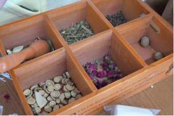 在活动现场,校本草协会成员结合中医理论,示范讲解了艾草药用文化知识与清明时节的养生要点。此外,通过中药文化知识牌小游戏、菊花茶品鉴以及中药香囊的手工制作环节,引导同学们深刻理解自然、生活、文化与健康之间相辅相成的紧密联系。