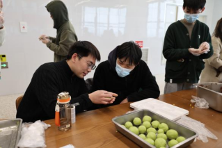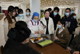 在食堂阿姨展示青团制作技艺后,同学们分组开展制作这一传统美食。通过亲身实践,同学们不仅掌握了“寒食青团”这一传统美食的制作技艺,更深刻理解了其中蕴含的“慎终追远”的文化深意。
