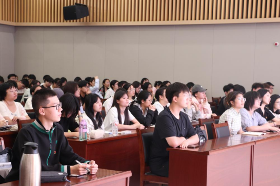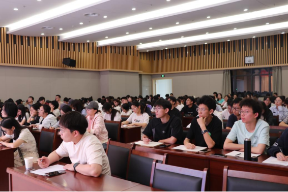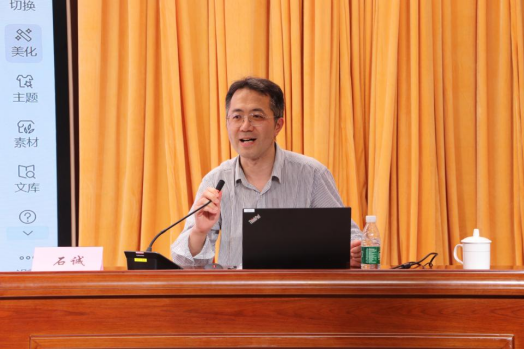 石诚老师以诺贝尔化学奖得主弗里茨·哈伯的故事为引,开展了对科学家精神的讨论,他强调科学家精神应该以爱国精神为底色。随后,石老师介绍了科学家精神在新中国的演变发展,并重点介绍了邓小平同志创造性提出“科学技术是第一生产力”的过程。石老师还以“中国院士第一案”为反例,警醒同学们要恪守道德底线,做德才兼备、服务于祖国和人民事业的科学家。