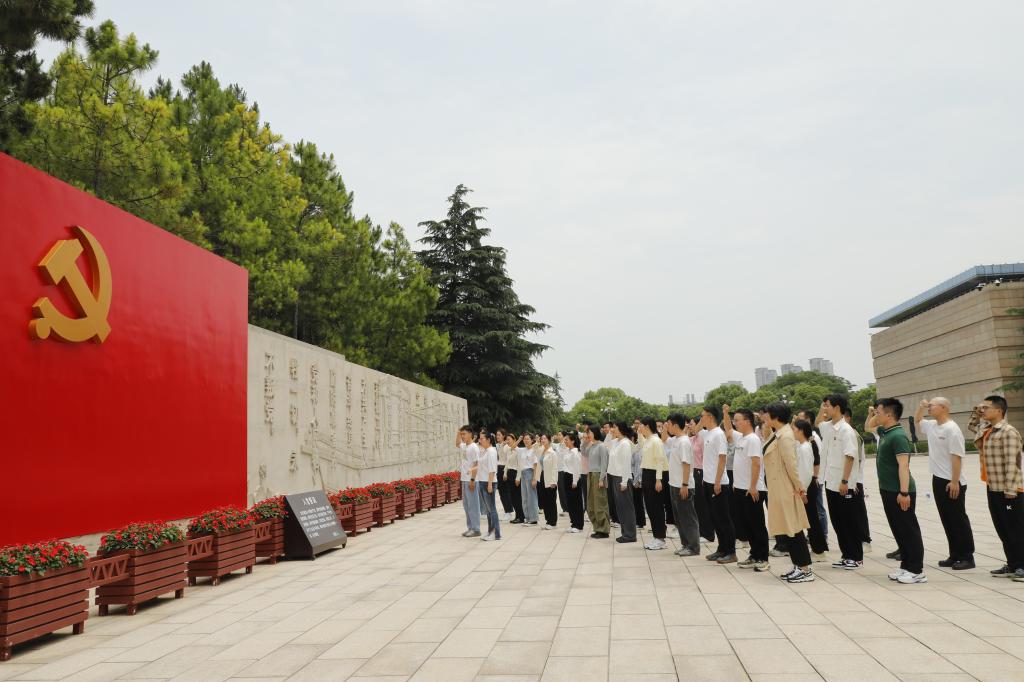 参观结束后,91自拍 一行在党旗前庄严宣誓。整齐洪亮的宣誓声在广场上回响,47名党员佩戴党徽,在领誓人的带领下,高举右拳庄重宣誓,表情严肃坚定,承诺掷地有声,表达了为党的事业奋斗终身的决心和信念。