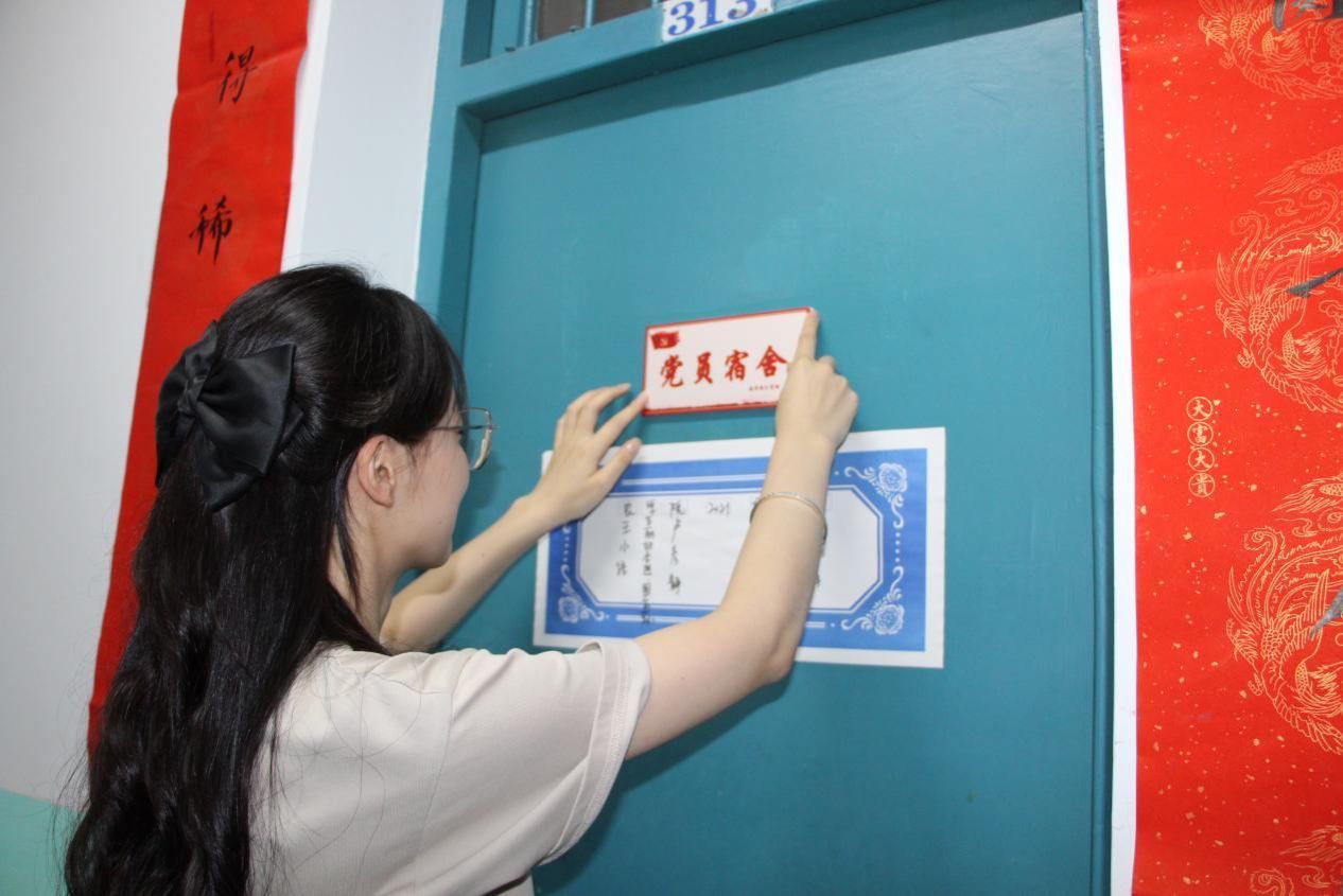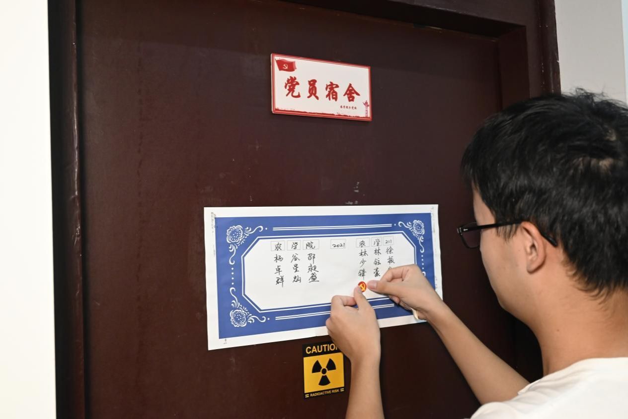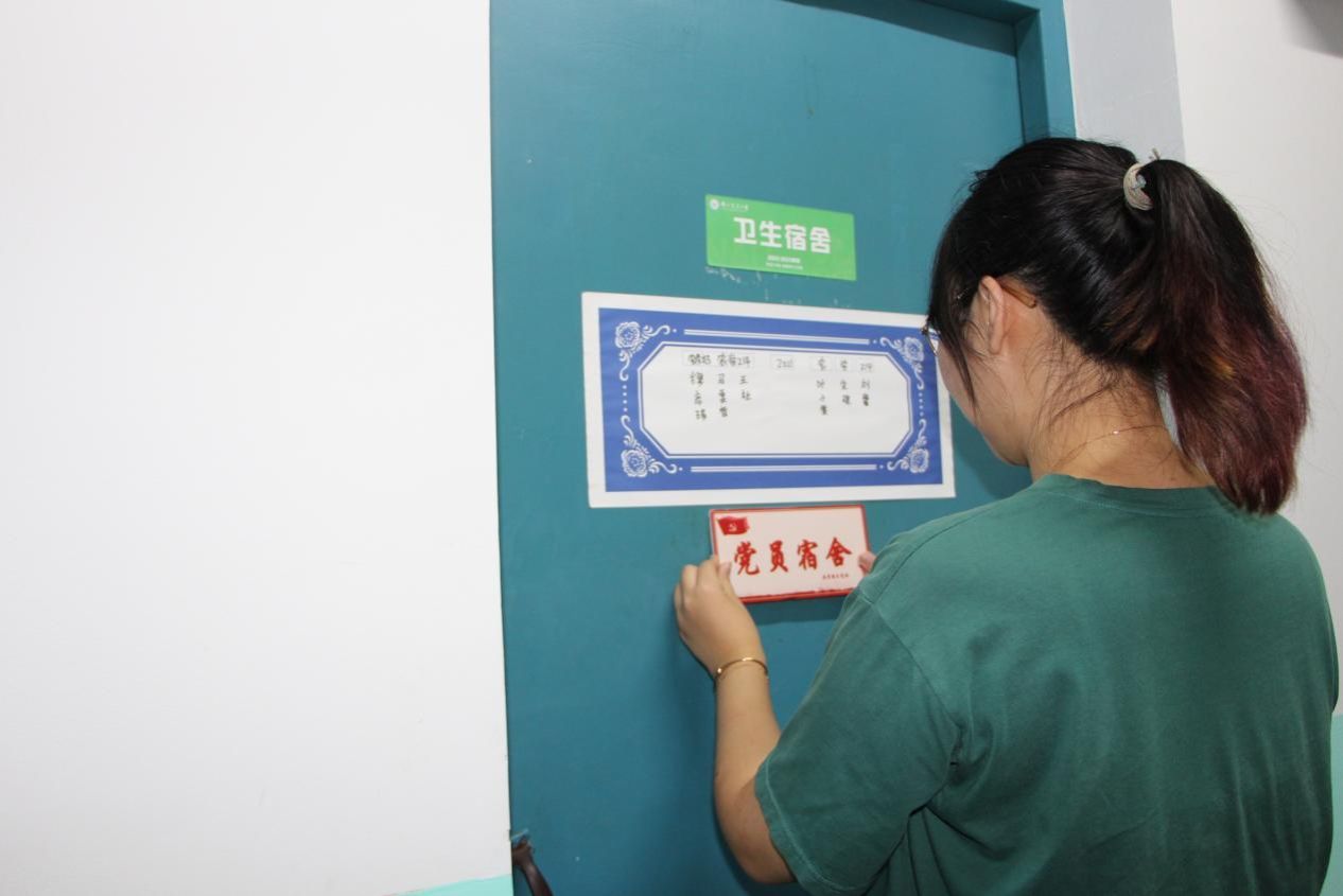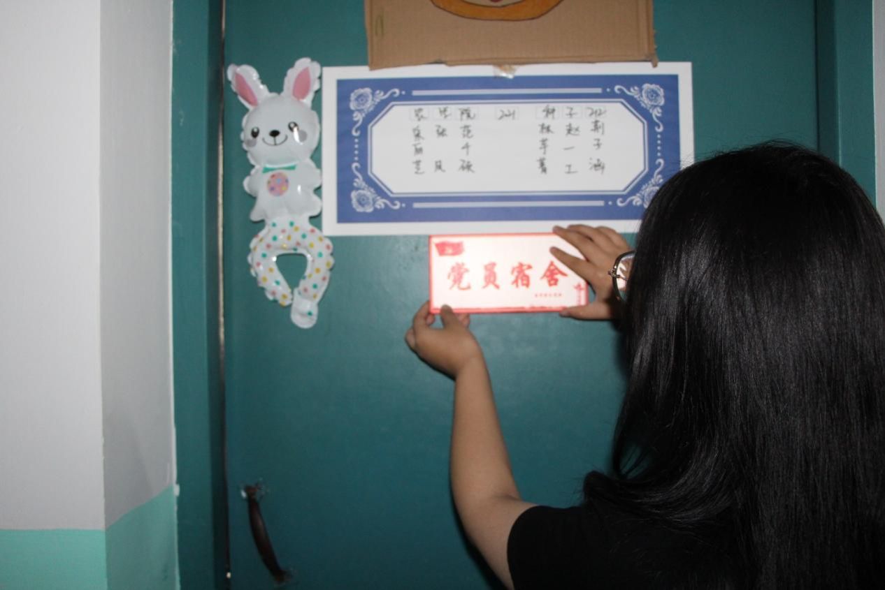 此次活动中,91自拍 分党校成员在预备党员所在宿舍门上粘贴“党员宿舍”牌,并在预备党员的姓名下方进行特别标记,共计完成宿舍亮牌17间、标记预备党员23名。