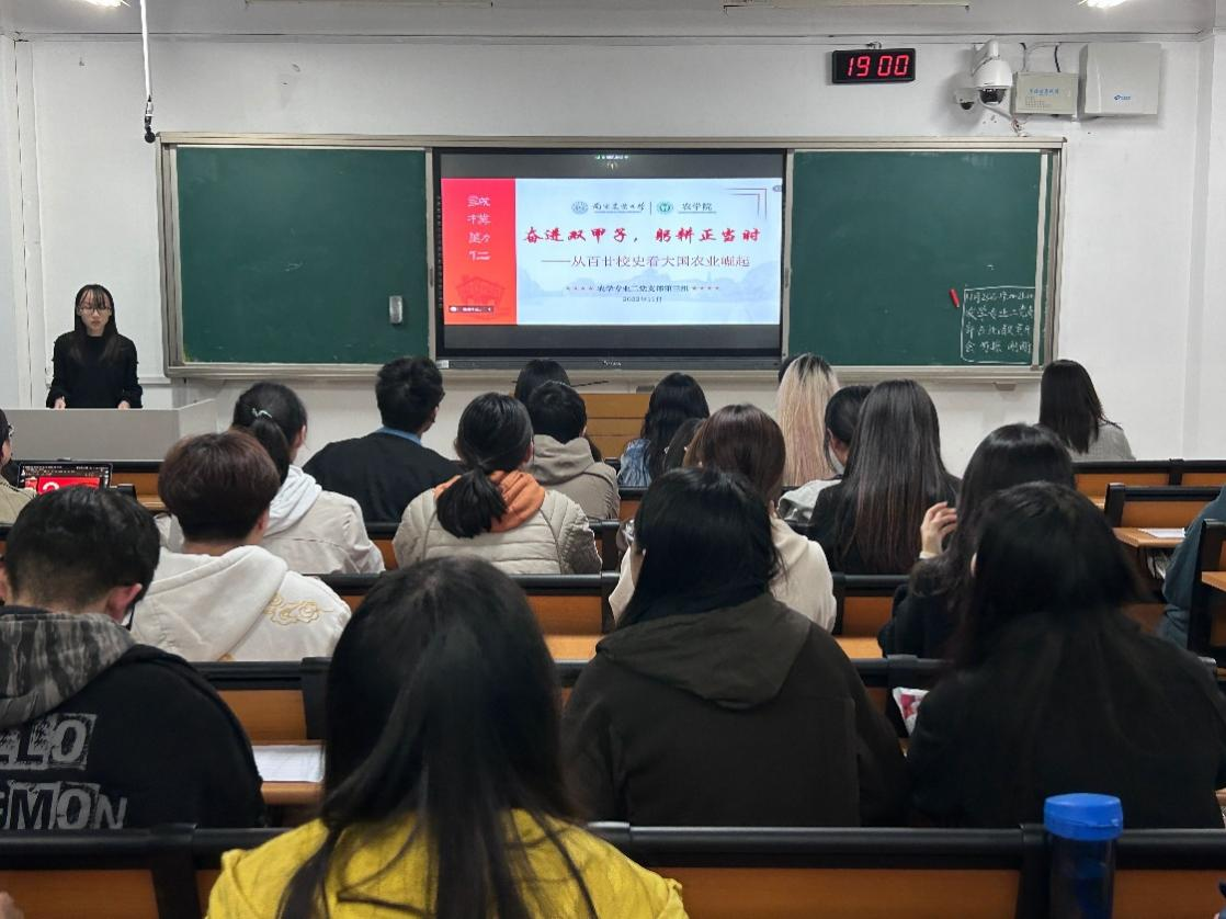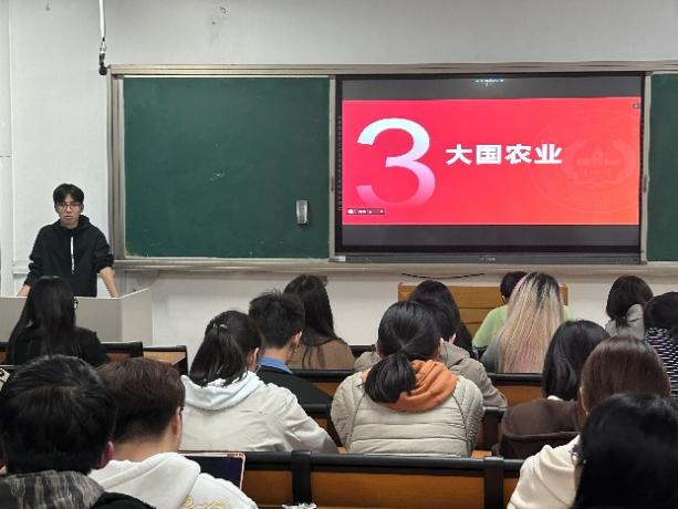 首先,主讲同学向大家讲解91自拍 120年发展历程,以此作为切入点,为大家介绍120年来南农凝聚的精神、南农获得的成就、南农在国际农业发展中的作为,并联系中国农业成就,从南农发展看向大国农业崛起。
