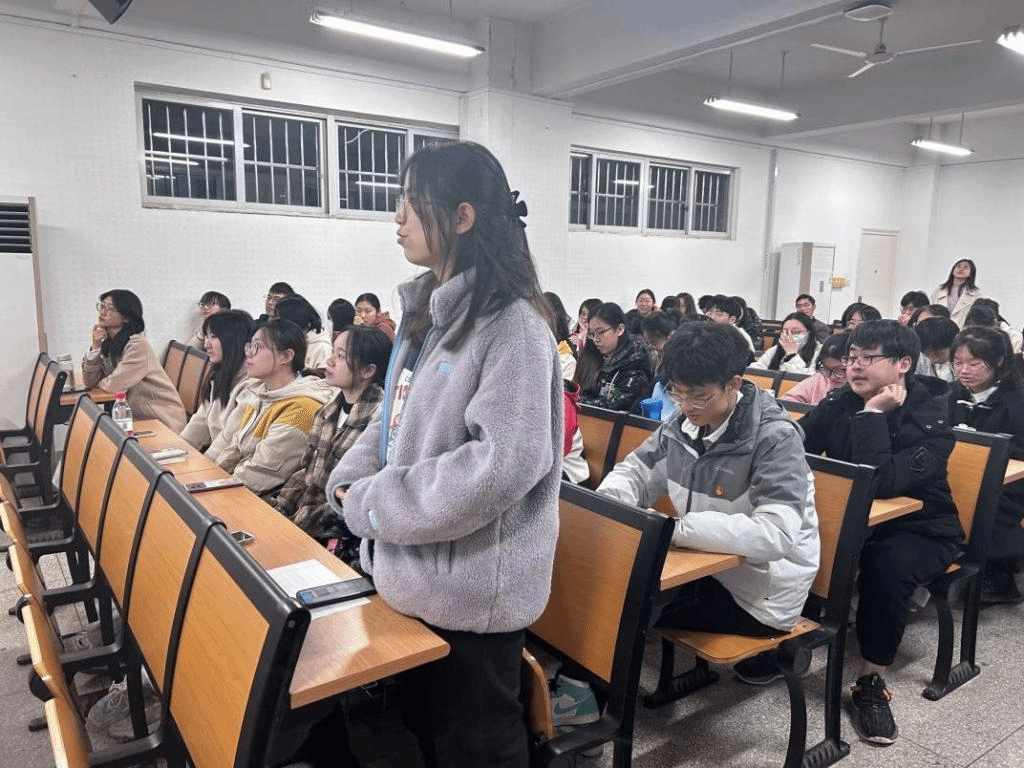 分班讨论的最后一部分中,左蒙欣以当代新农人魏巧为例向大家介绍了新时代青年投身“三农”事业的详细案例,深度解析现如今农村面临的人才问题,最后以“未来谁来种地”问题结尾,引发大家深度思考。针对“大学生与乡村振兴不妨走得更近一点”的话题,同学们展开了激烈地讨论。