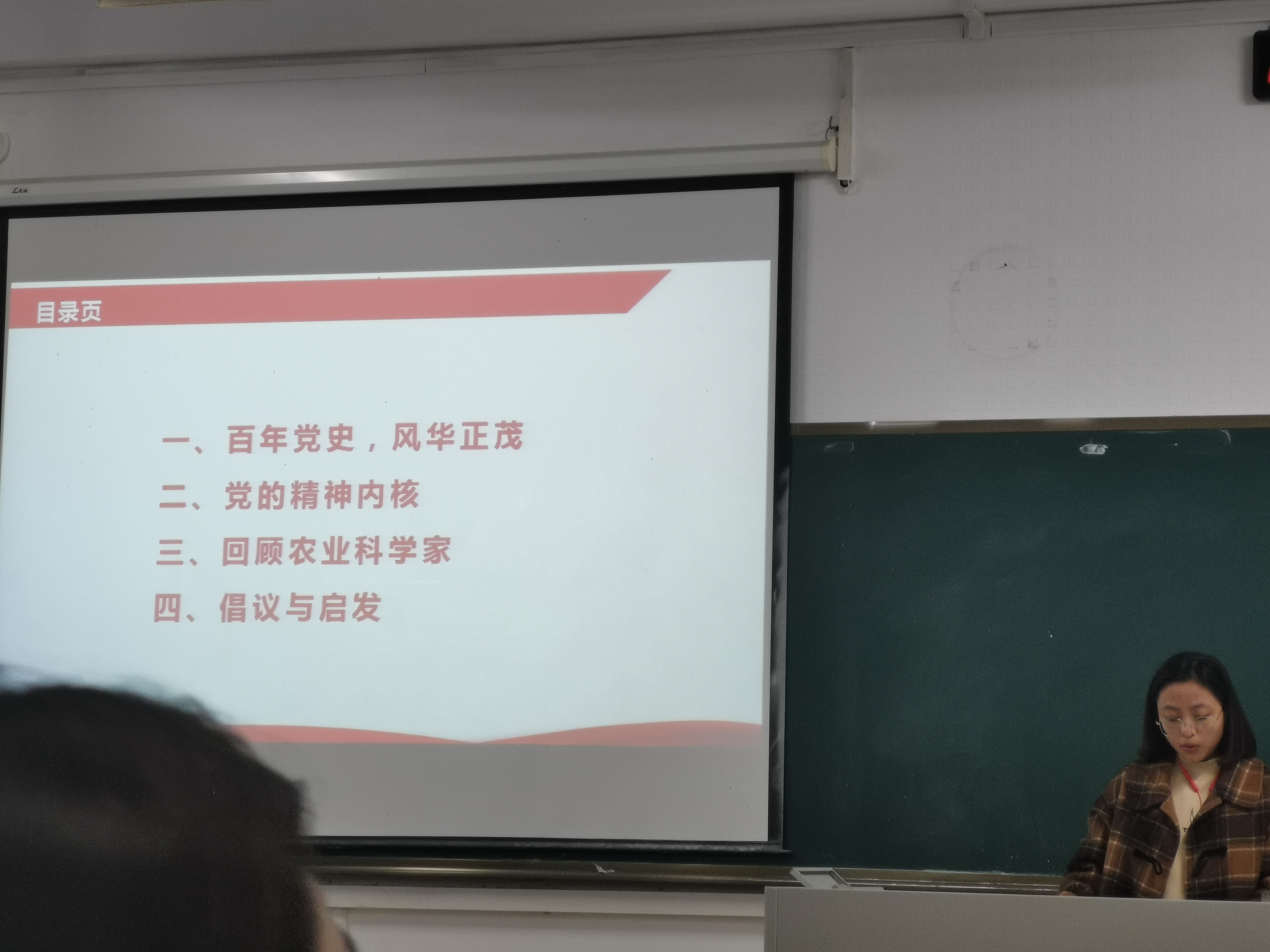 本次分班讨论主要分为“百年党史,风华正茂”“党的精神内核”“回顾农业科学家”“倡议与启发”四个部分。