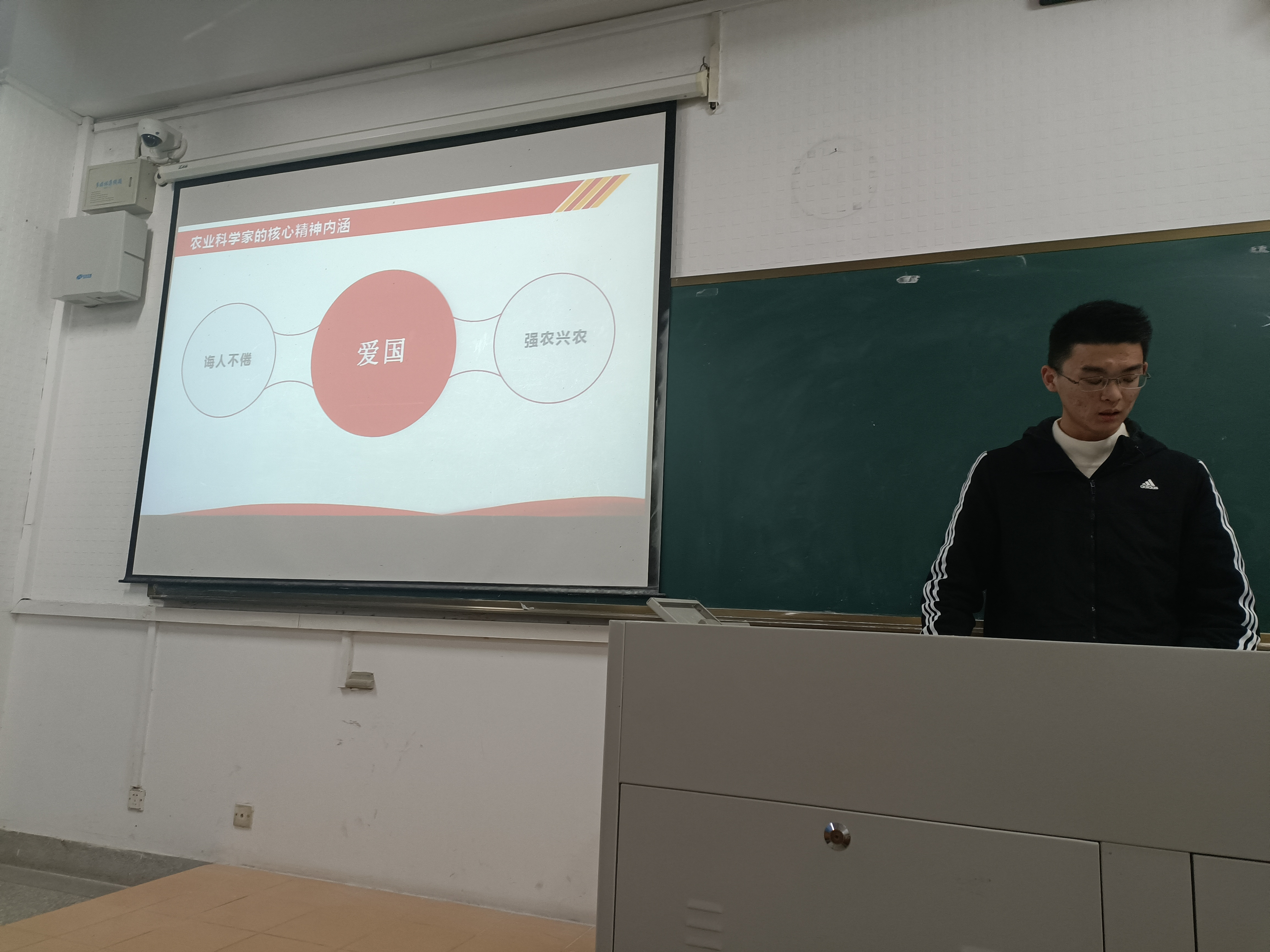 接着,陶承卓同学重点介绍了四位为国为民的农业科学家。他首先将农业科学家们的爱国表现分别总结为教育中诲人不倦的勤勉,在建设国家中强农兴农的胸怀。随后,他具体讲述了金善宝、邹秉文、马育华和朱立宏四位杰出农学家故事,充分展现出老一辈农学人“脚踏实地”、“顶天立地”的家国情怀,引发大家思考如何做一个合格的农学人。