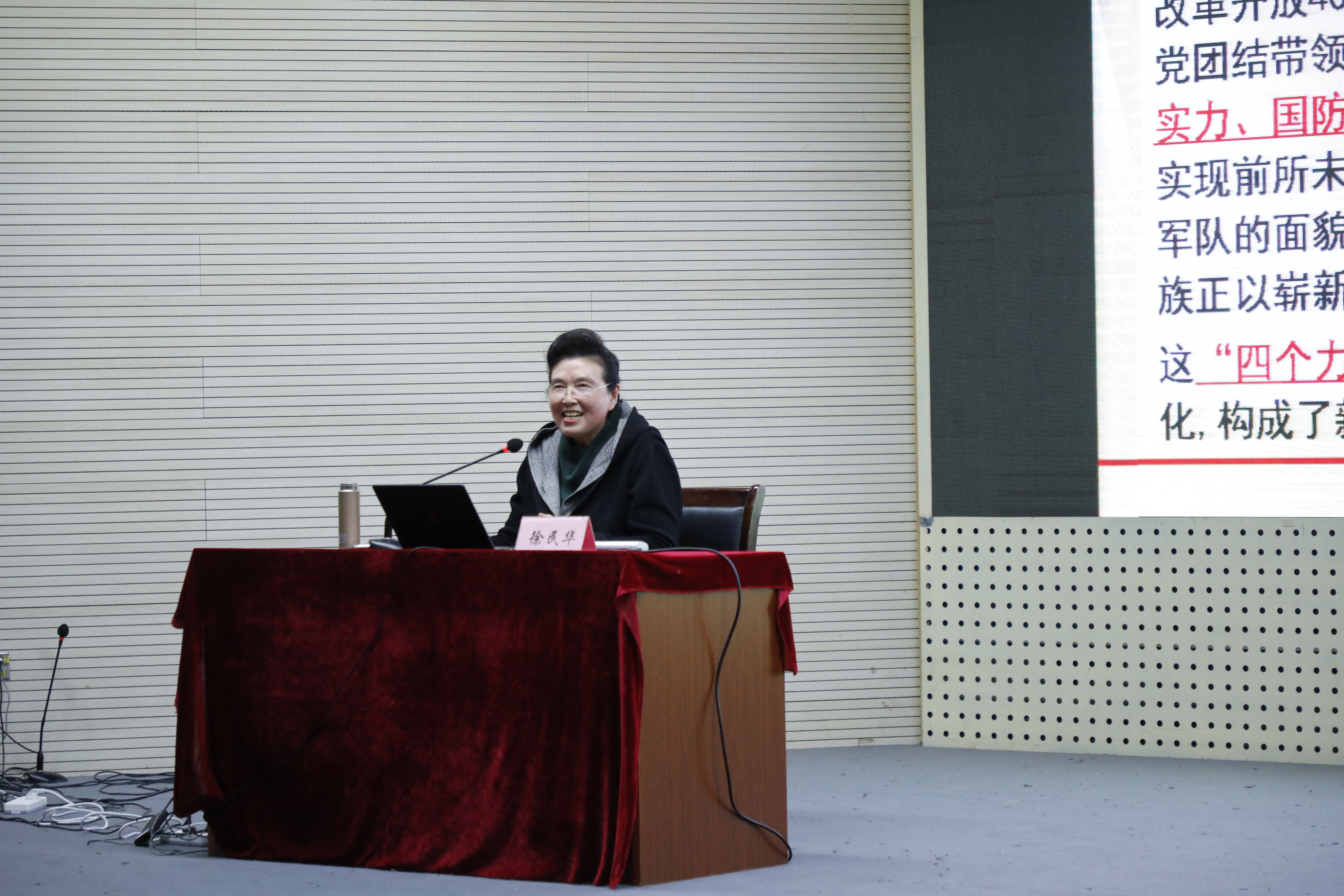 徐教授首先强调了十九届六中全会的历史定位,她指出习近平新时代中国特色社会主义思想开辟了马克思主义中国化的新境界,实现了马克思主义中国化第三次飞跃,提出了一系列原创性的治国理念,并提醒青年大学生应当积极主动学习习近平新时代中国特色社会主义理论,用思想武装头脑,听党话,跟党走,坚定信心,砥砺前行。