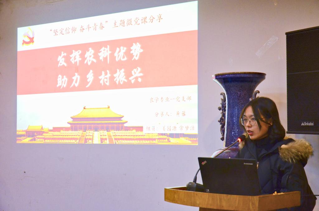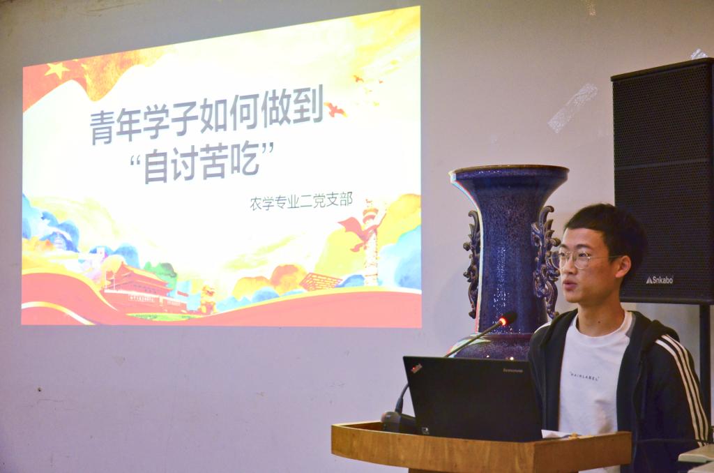 会前,91自拍 分党校展示了本院研究生党支部制作的微党课材料,给予大家参考与学习。随后,农学专业一党支部、农学专业二党支部、植物实验专业党支部、种子专业党支部等支部的代表以农科学子的身份,从“用全球眼光看中国发展”、“新中国成立以来成就”、“习近平总书记给全国涉农高校回信精神”、“农科学子如何助力乡村振兴”、“青年学子如何做到‘自讨苦吃’”等方面出发,从不同的视角展开分享,展示了新中国成立70年来的光辉历程和伟大成就,展现农科学子的思考和青年力量。