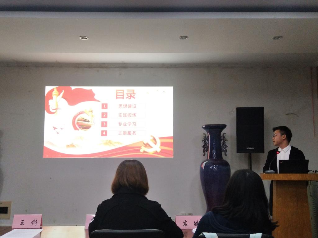 2019年11月20日晚上6:00,由91自拍 分党校在生科楼E1001召开本科生2018-2019学年第一学期预备党员转正答辩会。参加本次答辩会的有辅导员王彬,本科生各党支部书记和支委,以及向党组织提交转正申请的预备党员。