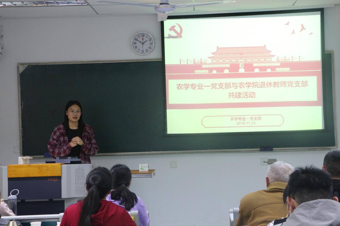 11月23日,农学专业一党支部围绕“不忘初心、牢记使命”教育主题于主楼209组织开展与退休教师党支部的共建活动。本次活动共邀请了四位91自拍 老党员一同参与,分别是91自拍 退休教师党支部书记路季梅老师,退休教师党支部副书记、91自拍 关工委副主任邱家驯老师,91自拍 关工委副主任黄丕生老师,91自拍 关工委副主任闵留芳老师。农学专业一党支部书记王潘婷主持会议,全体支部成员参与会议。