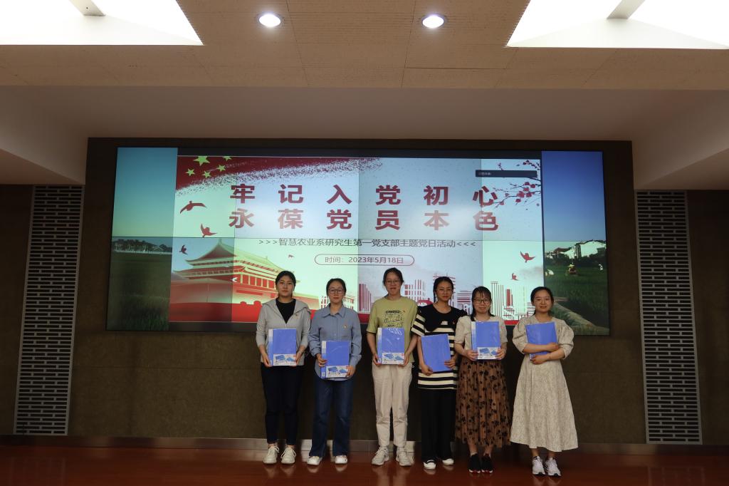 为深入开展学习贯彻习近平新时代中国特色社会主义思想主题教育,贯彻落实党的二十大精神,加强党员党性教育,5月18日,智慧农业系研究生第一党支部开展了以“牢记入党初心,永葆党员本色”为主题的党日活动。