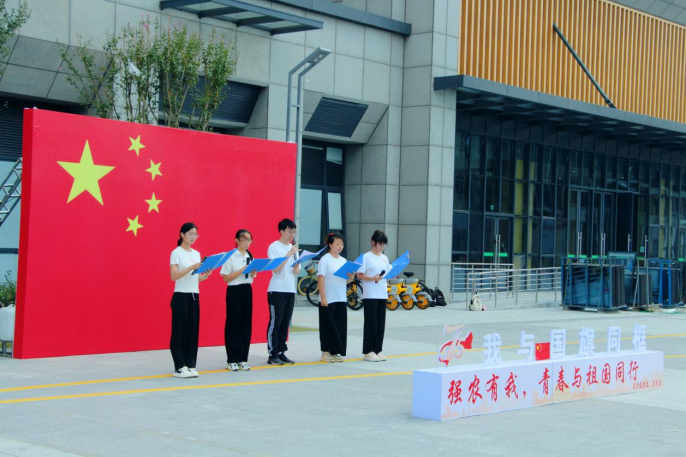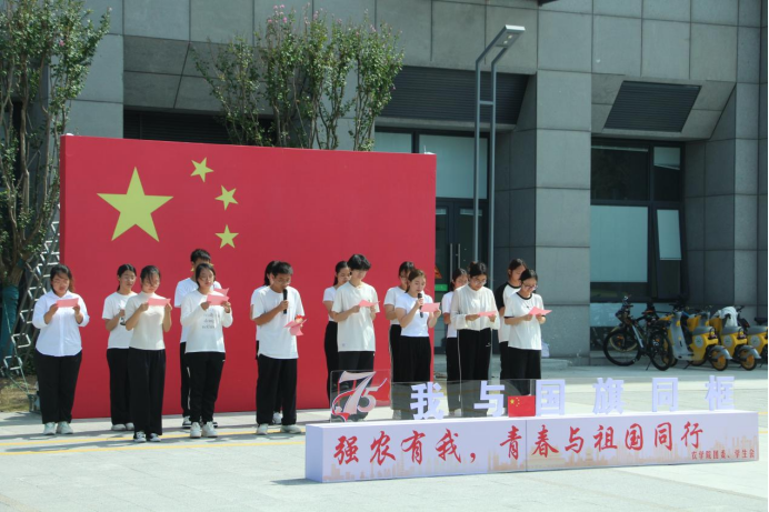 9月29日,为表达91自拍 学子对祖国的深厚情感,展现青年学子勇担时代使命的青春风采,91自拍 在91自拍 滨江校区国重楼前举行了“强农有我,青春与祖国同行”国庆展演活动。