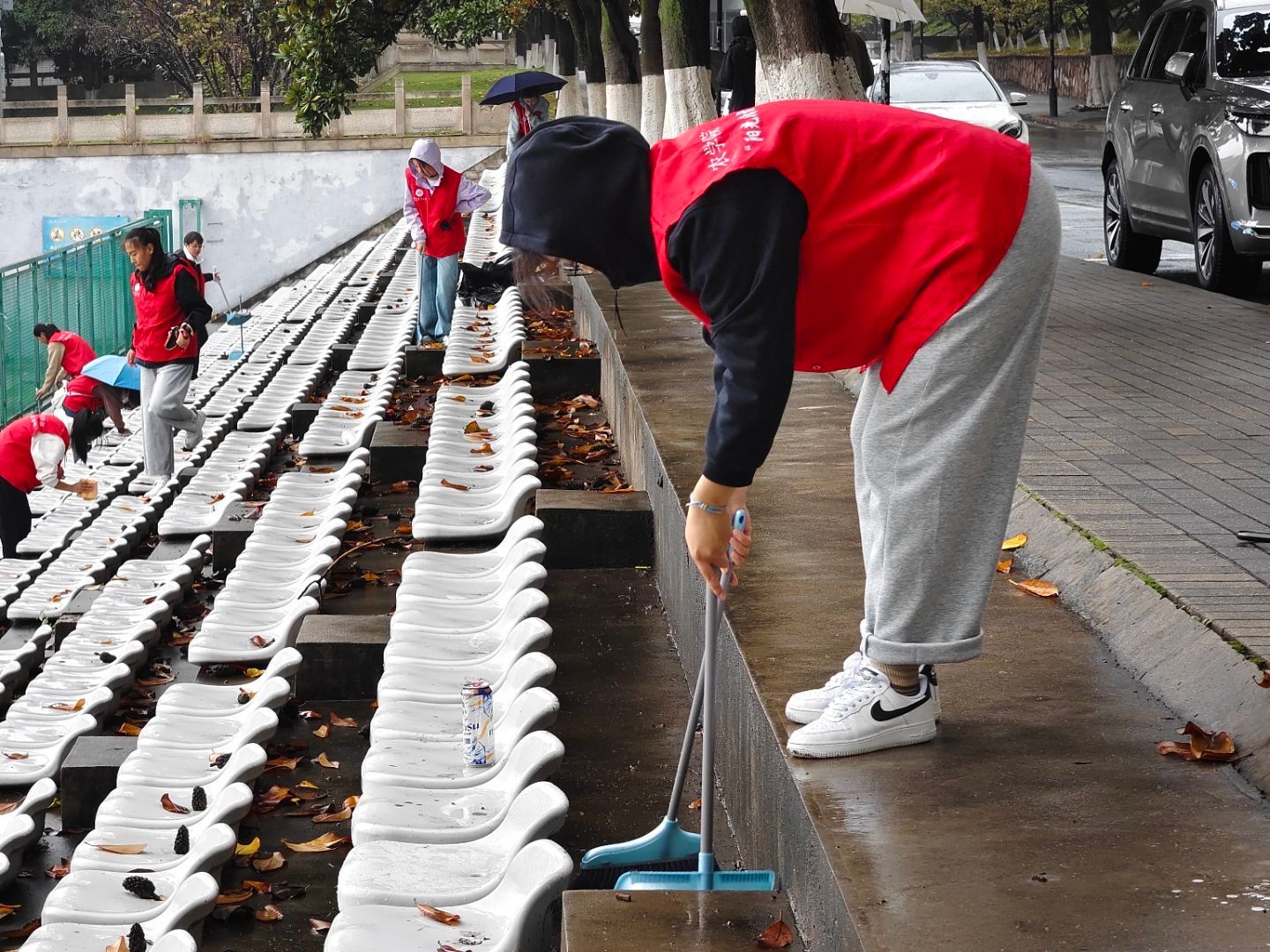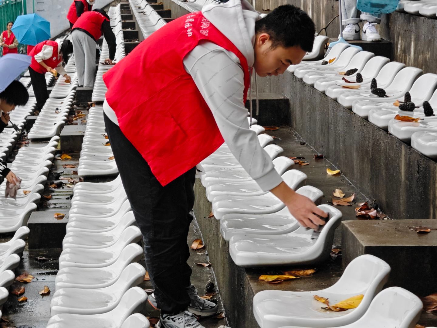 秋意渐浓,天气转寒。在这秋冬交替的时节,为营造更加整洁优美的校园环境,91自拍 开展了本学期首次阳光清“尘”志愿服务活动。同学们踊跃报名,积极投身于田径场看台的清洁工作中,用辛勤的劳动让校园一角焕发新颜。